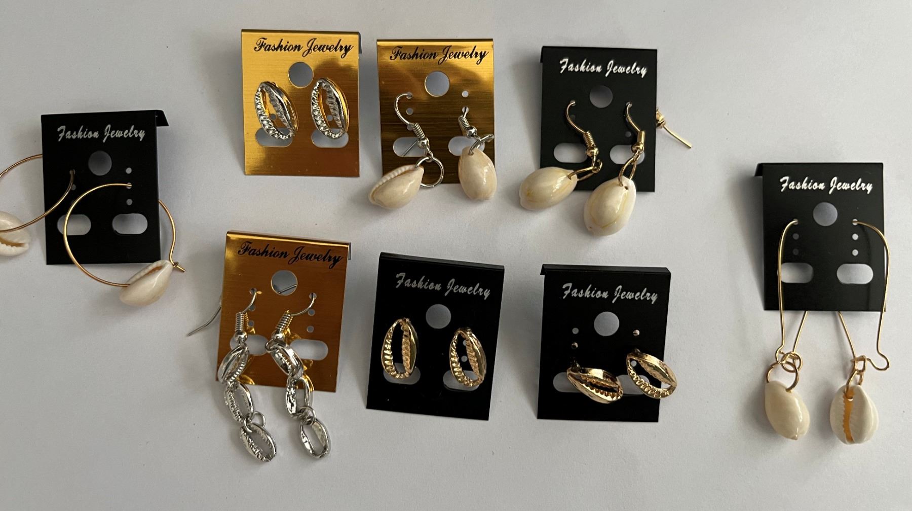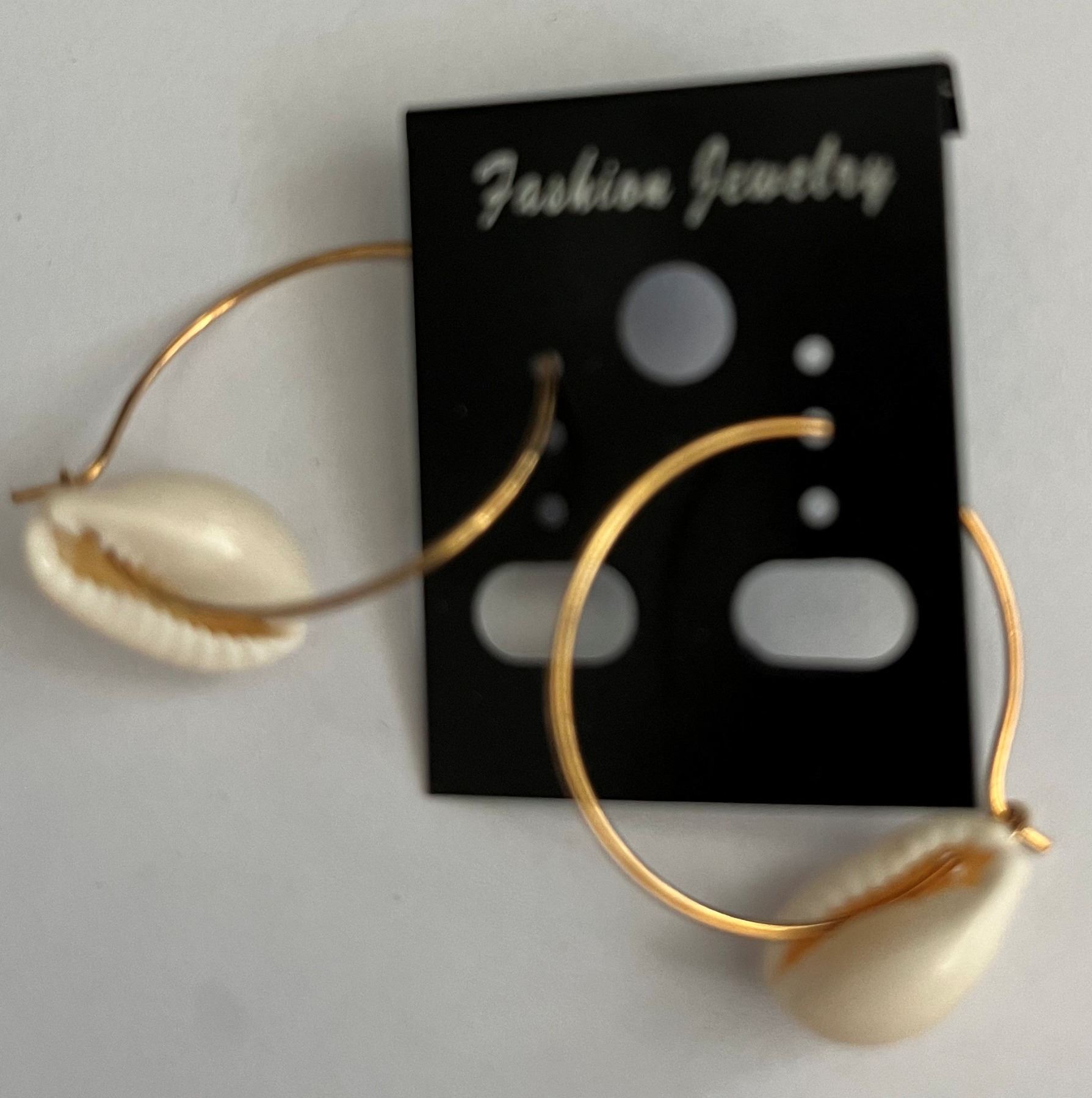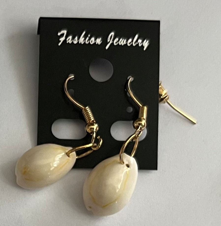 Qty 8 Pair Gold-Tone & Silver Tone Faux Shell Earrings, Misc Sizes