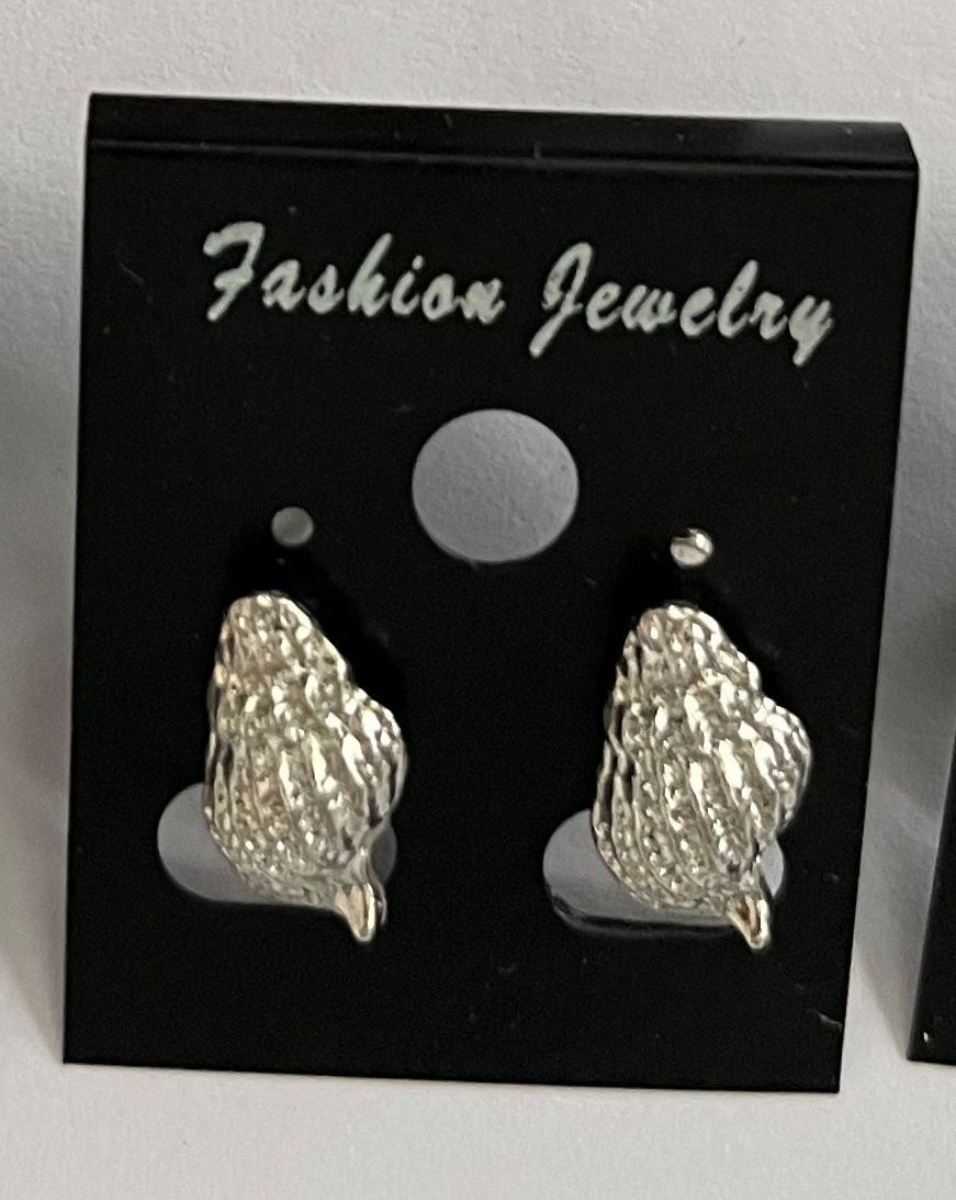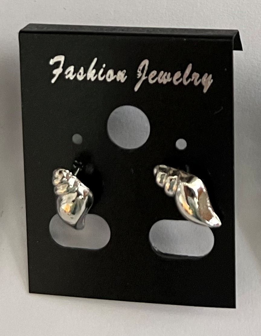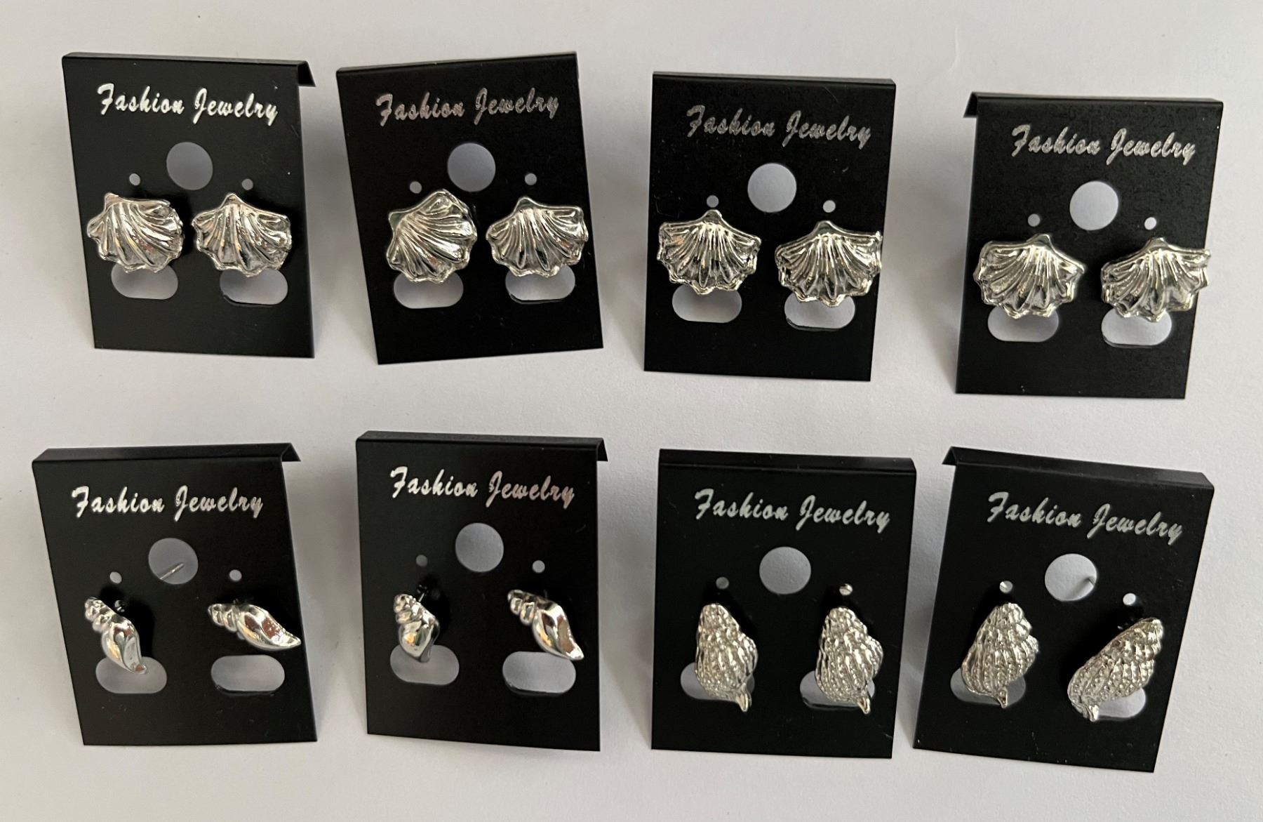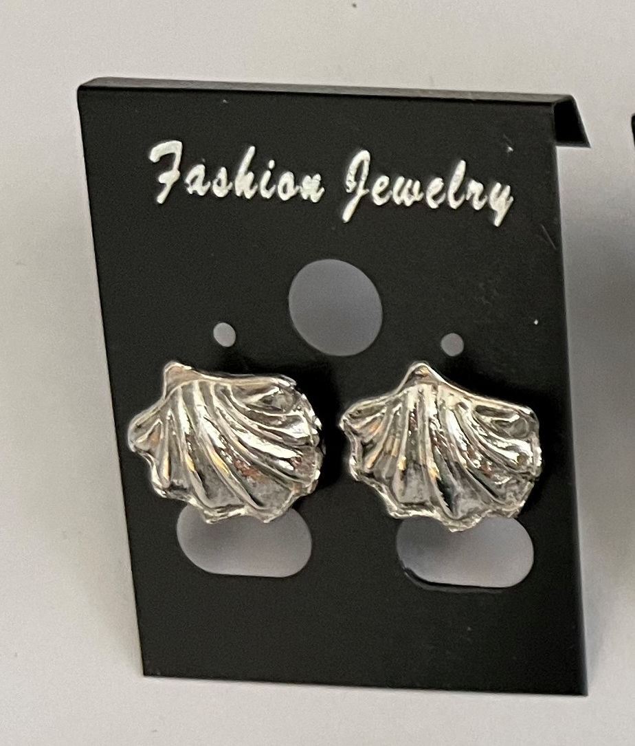 Qty 8 Pair Metal Silver-Tone Shell Shaped Stud Pierced Earrings