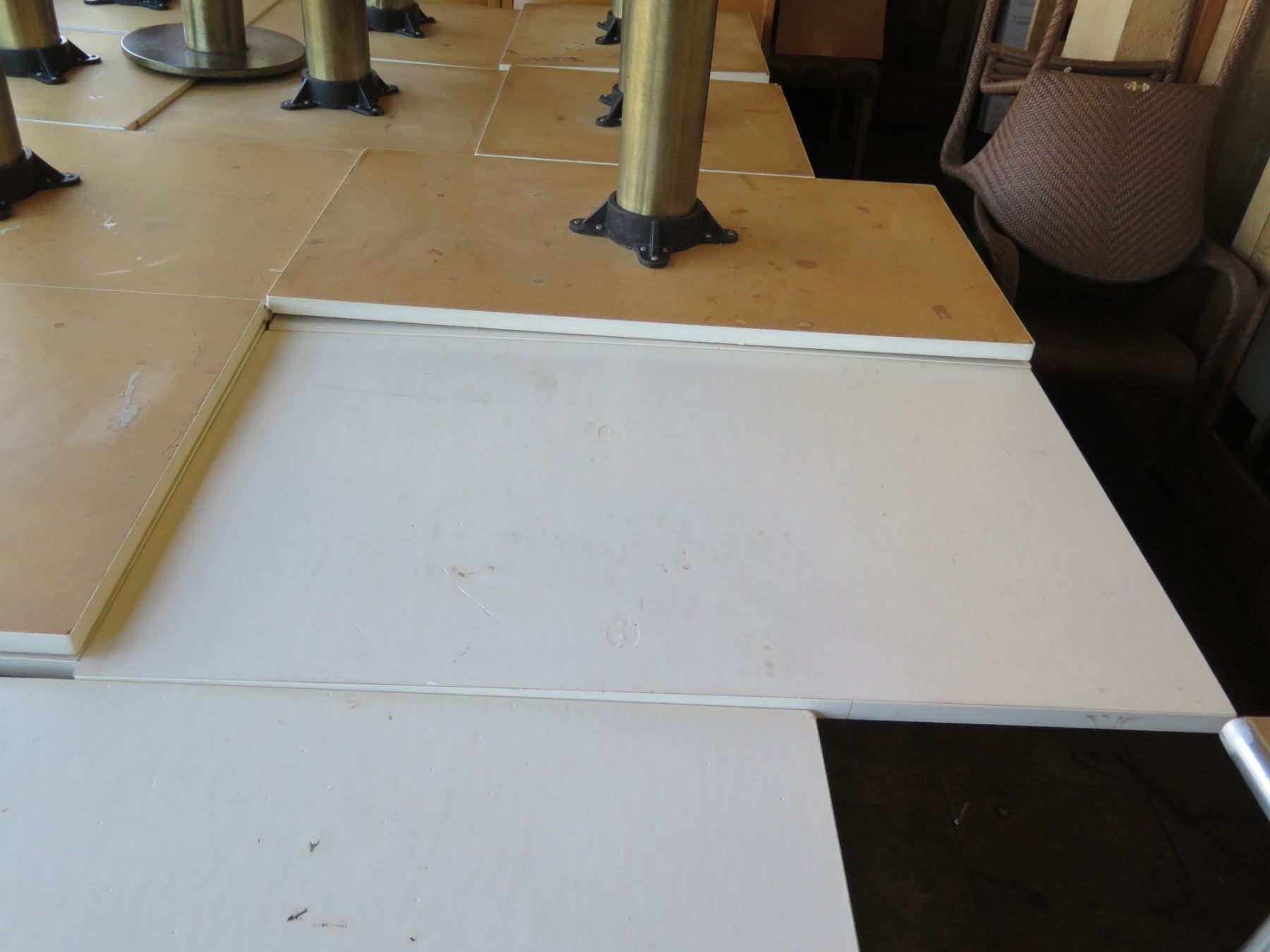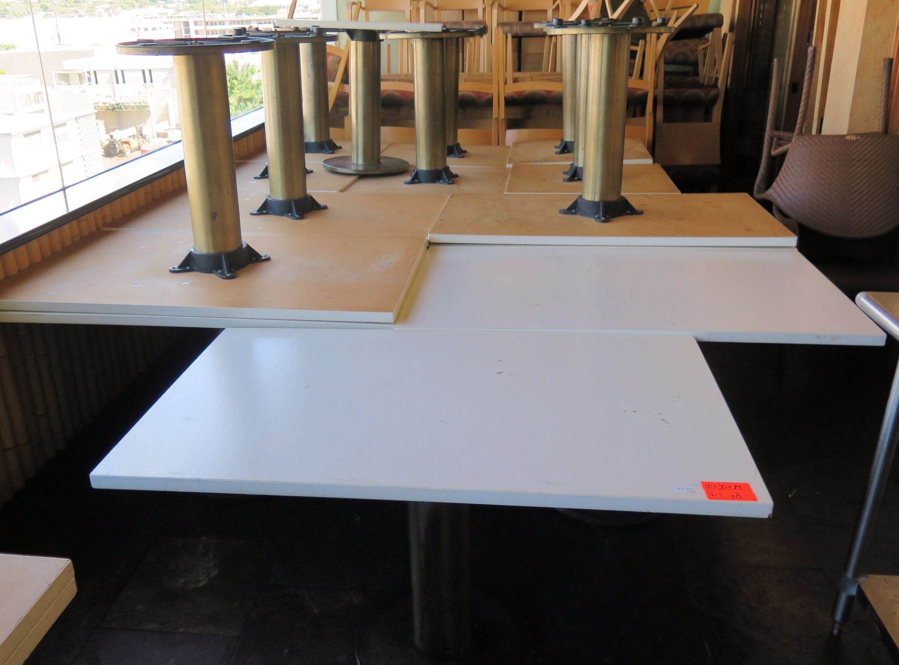 Qty 8 Rectangle White Tables w/ Double Pedestal Base 50"x30"x29"