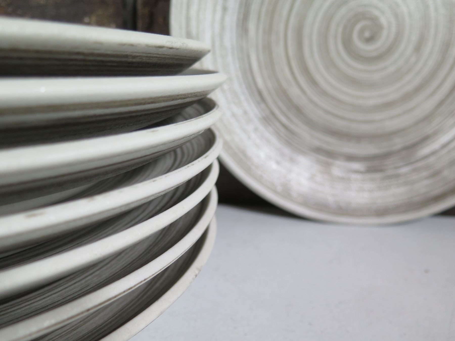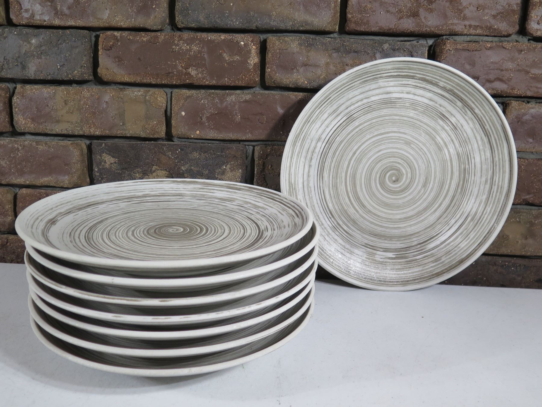 Qty 8 Round Swirl Plates w/ Maker's Marks 11"dia