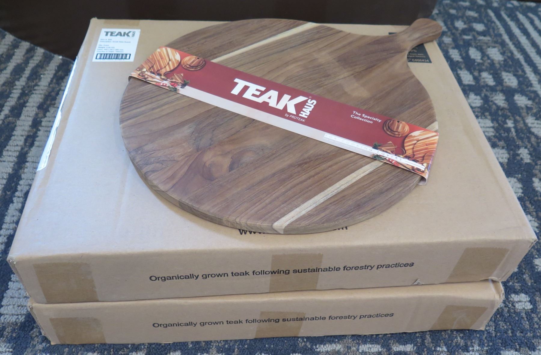 Qty 8 Teak Haus 909 Small Atlas Pizza Serving Boards 14" Dia, New in Box ($36 retail each)