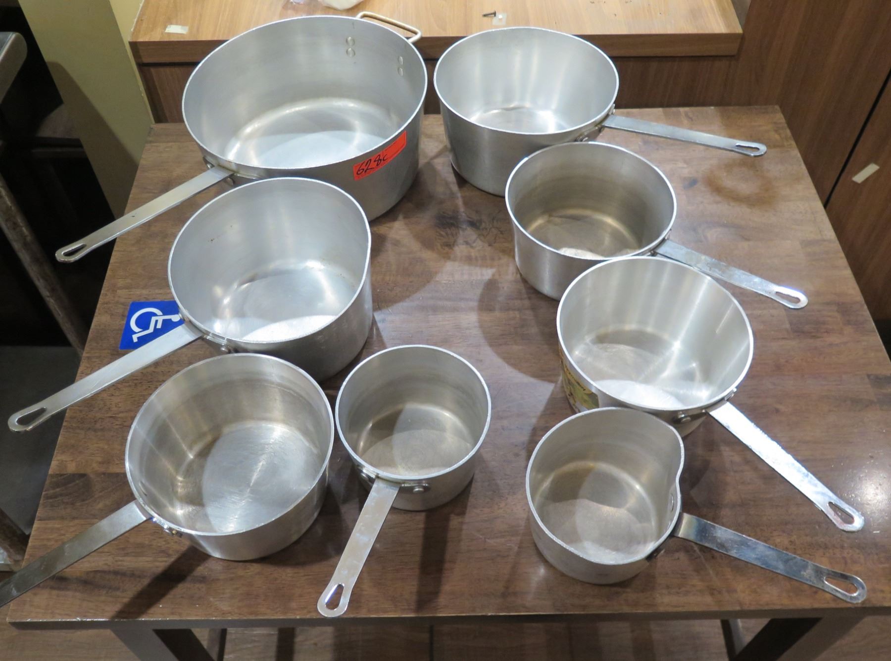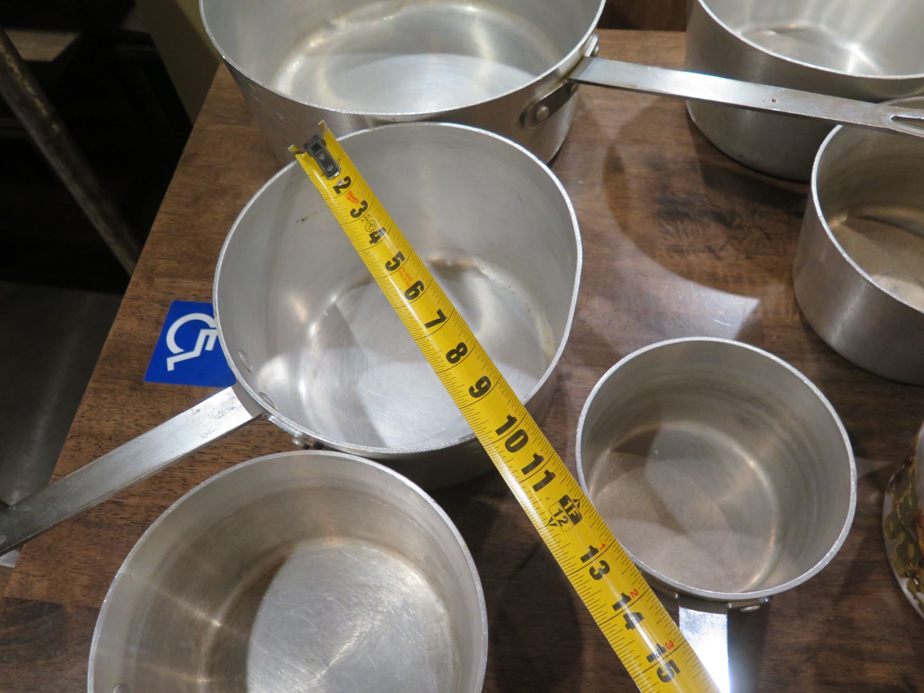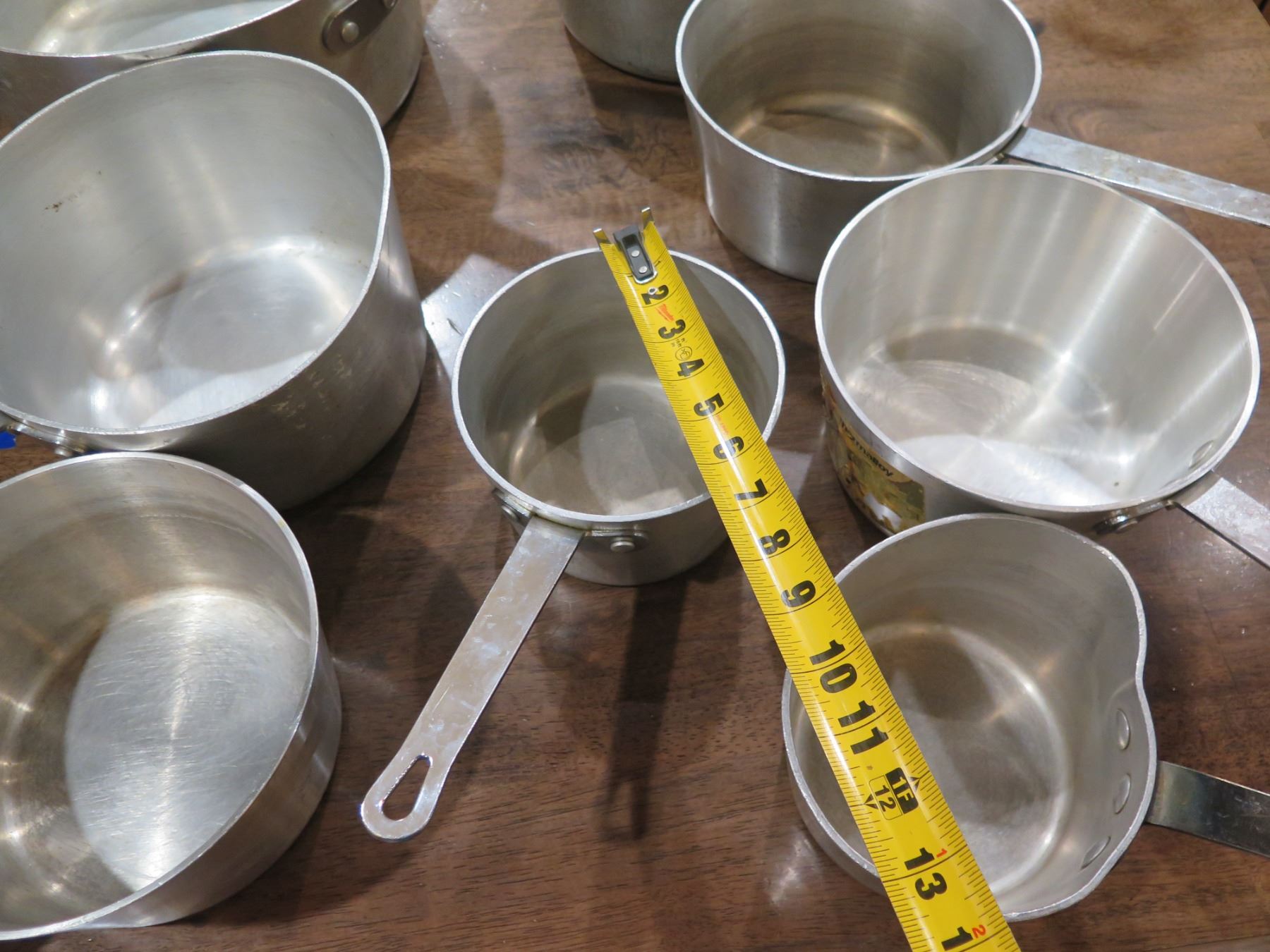 Qty 8 Thermalloy Metal Sauce Pots w/ Handles, Misc Sizes
