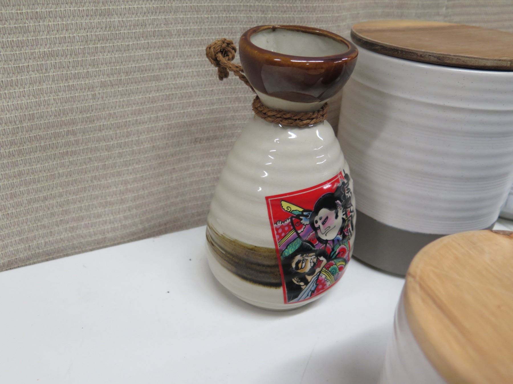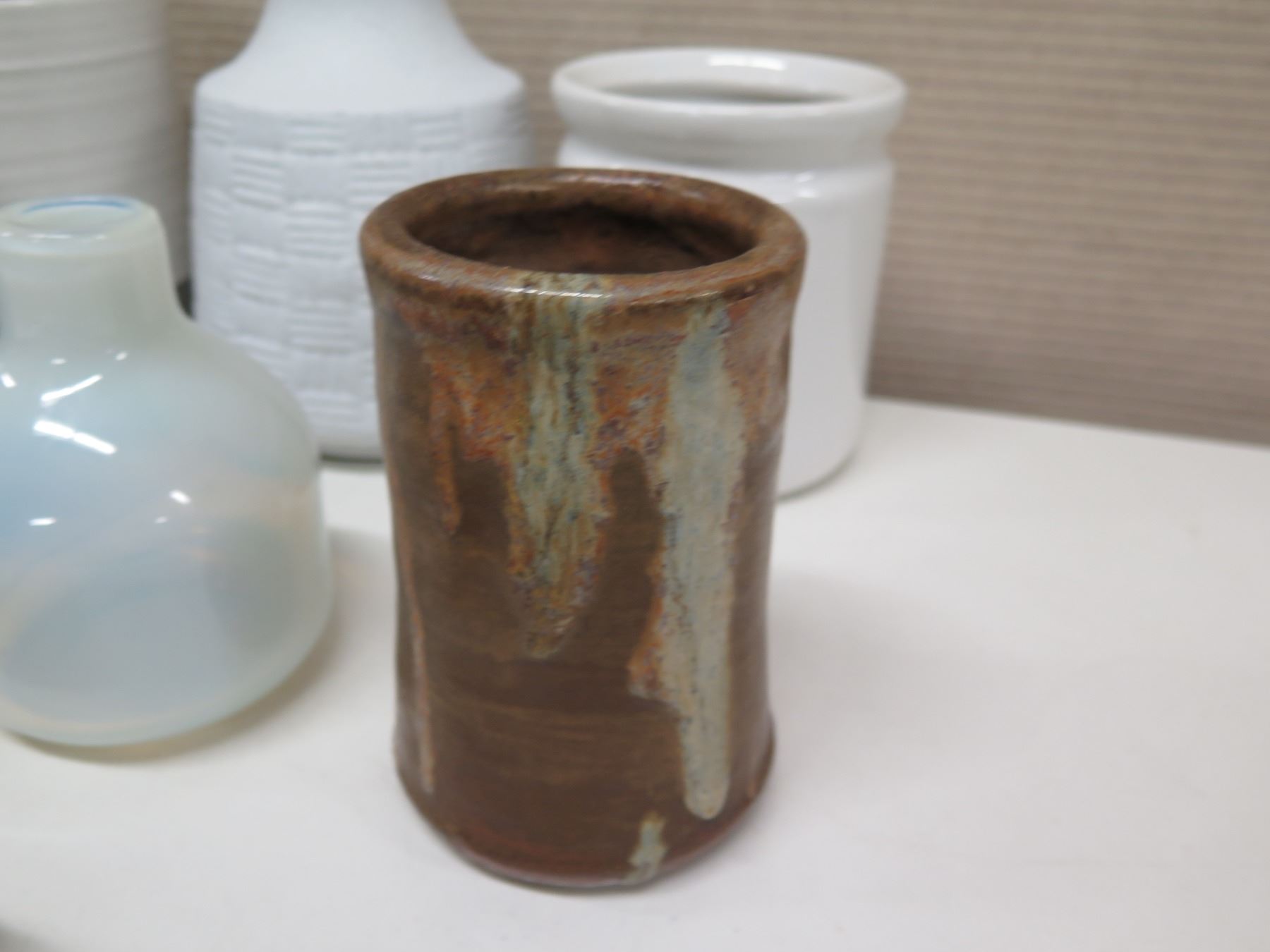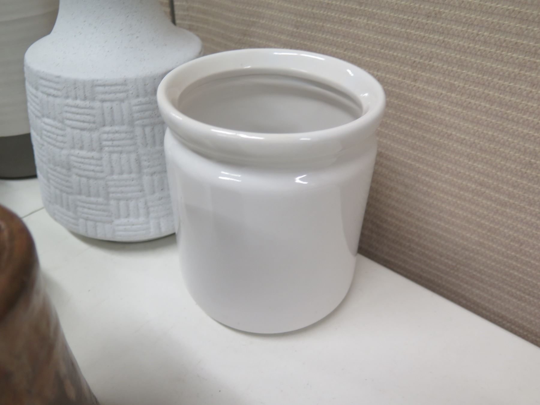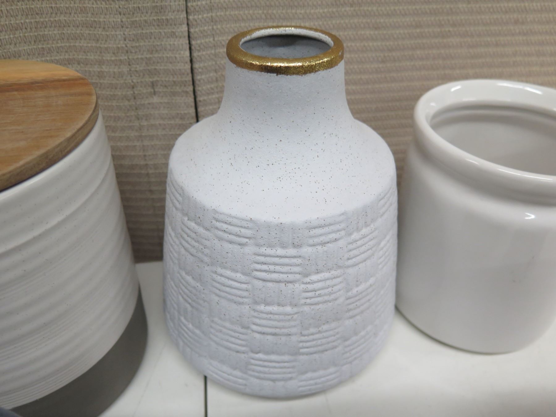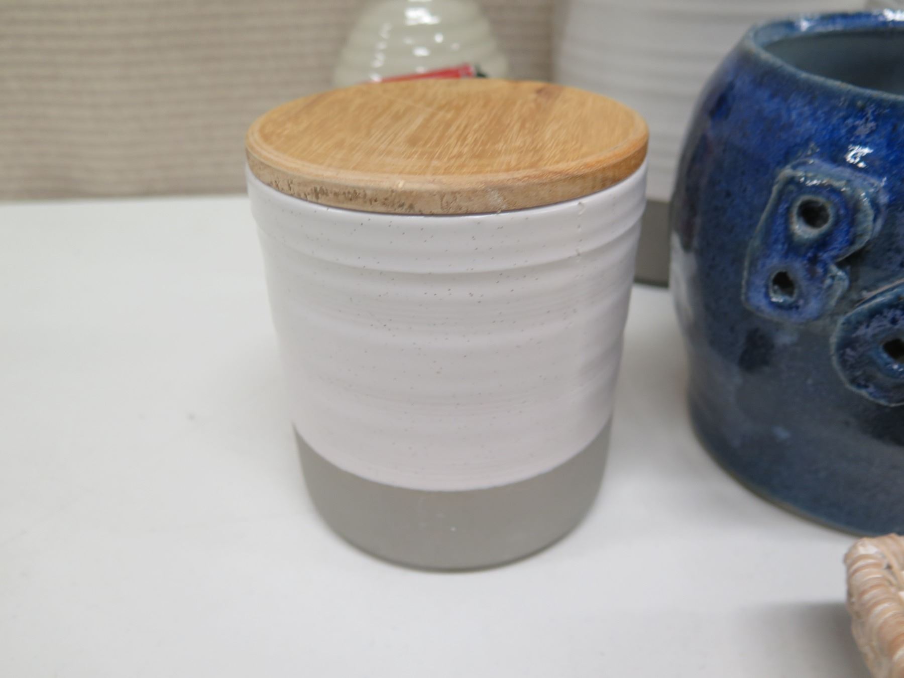 Qty 8 Vases & Decorative Containers Misc Sizes & Designs w/ Woven Tray