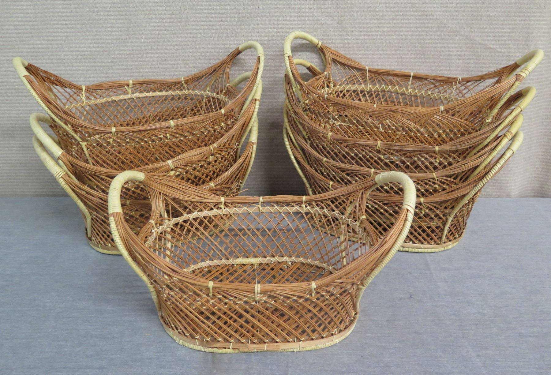 Qty 8 Woven Oval Open Baskets w/ Side Handles 17 L x 10 W x 9 H