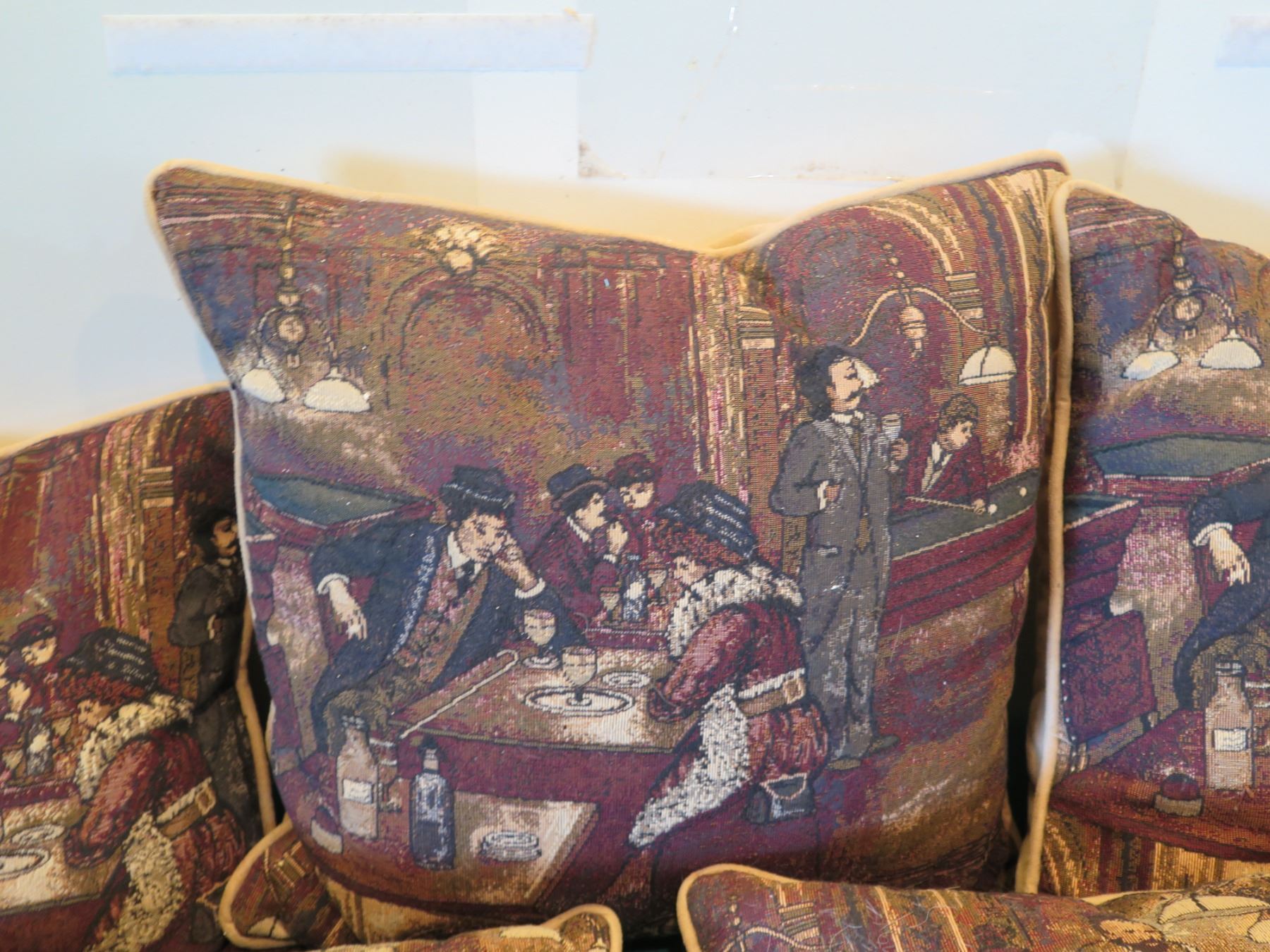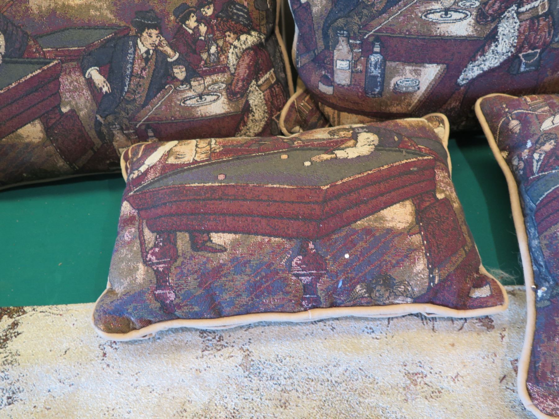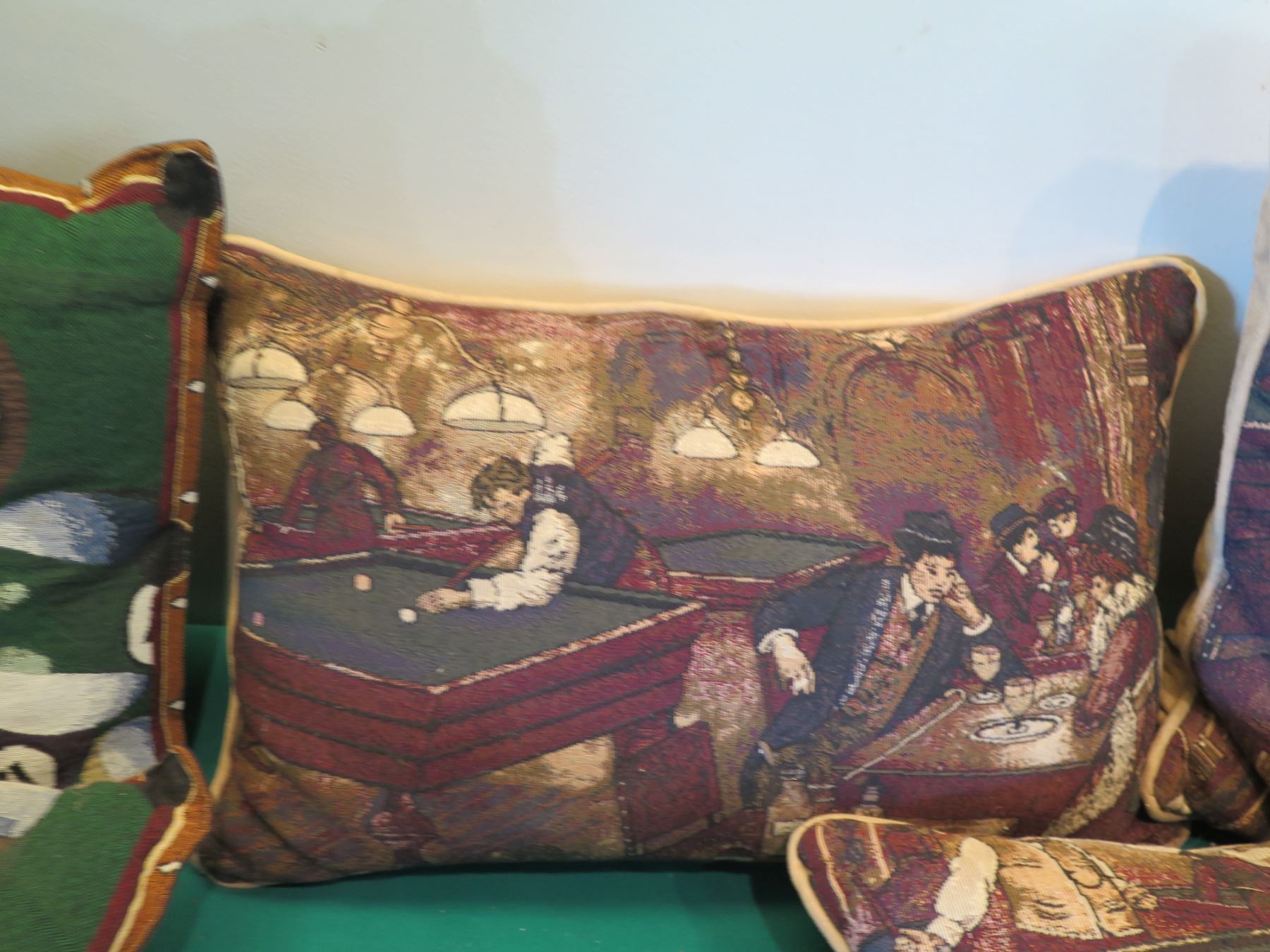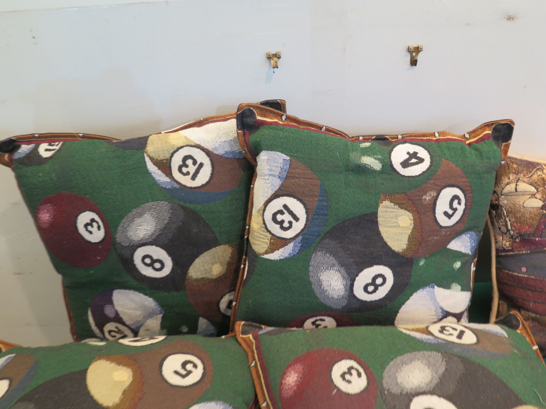 Qty 9 Billiards Pool Themed Throw Pillows & Cue Ball Rug Fine Art Tapestries