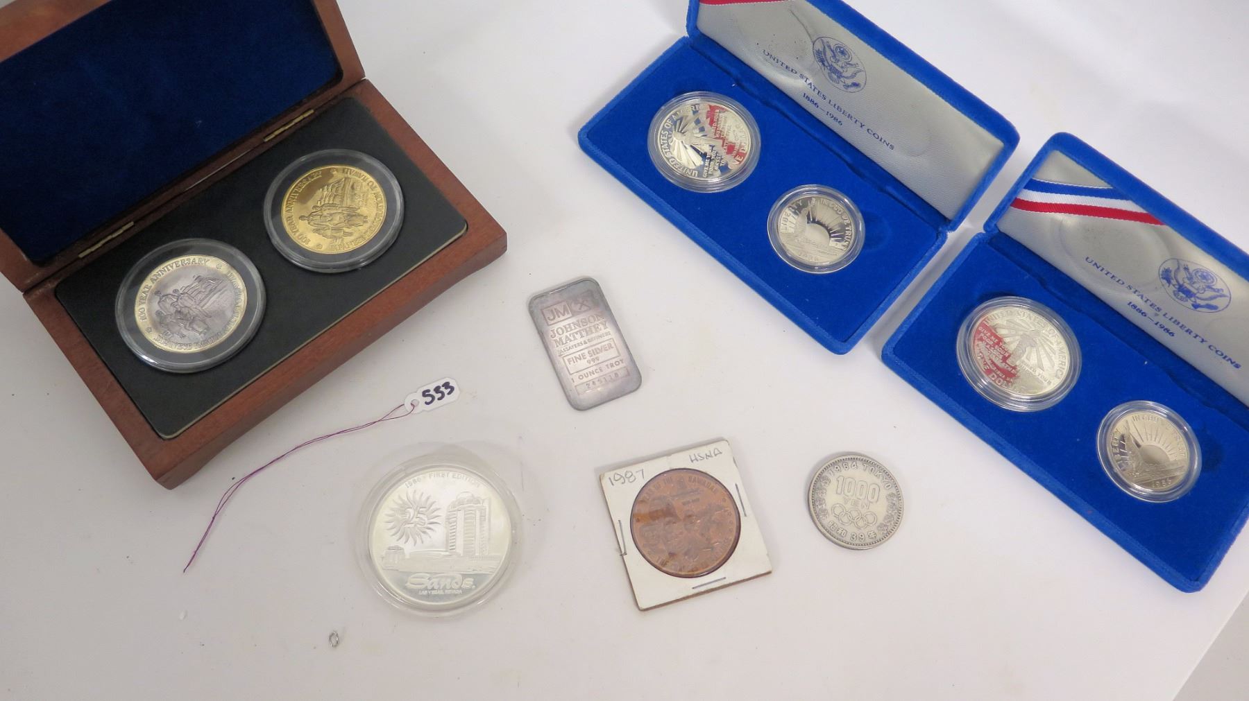 Qty 9 Coins - 3 Boxed Sets - Yen, Hawaiian Coin, Vegas & 1 Troy Oz Silver