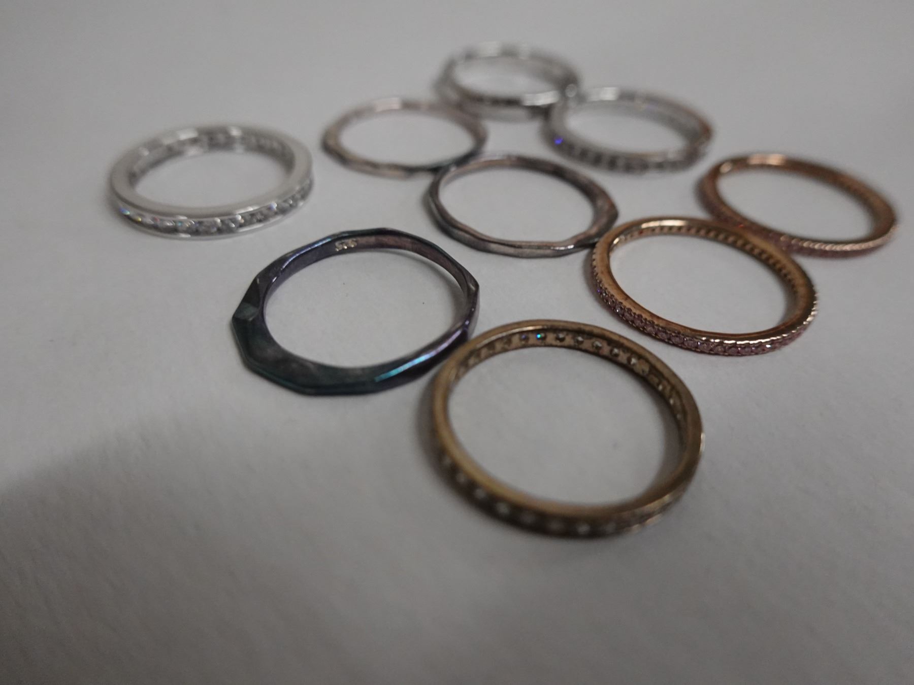 Qty 9 Fashion Rings, Misc Styles & Sizes