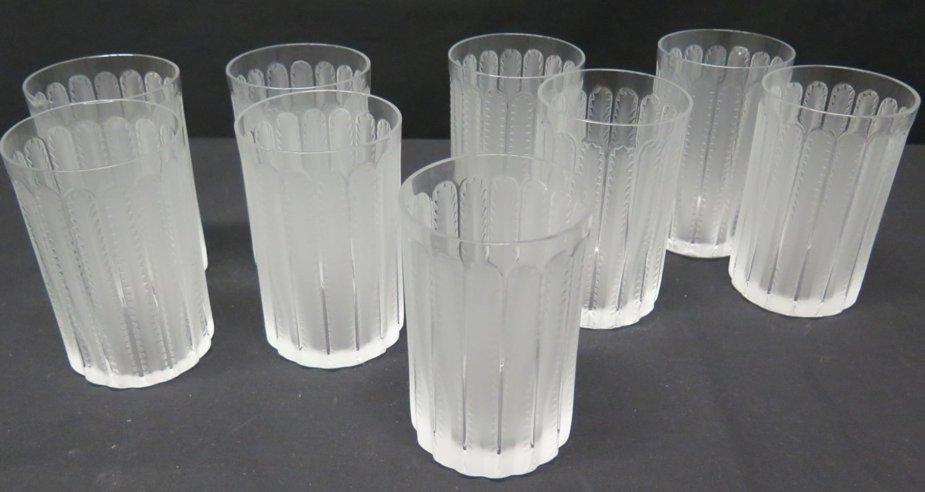 Qty 9 Lalique Frosted Beverage Glasses, Approx. 5" H