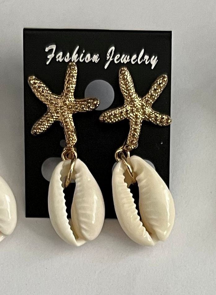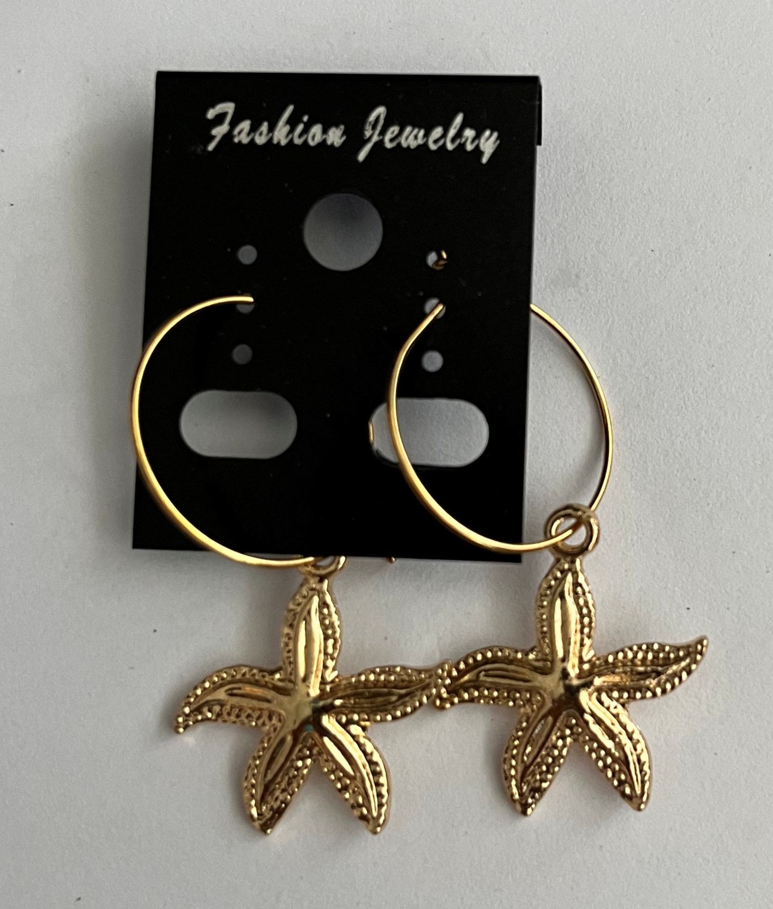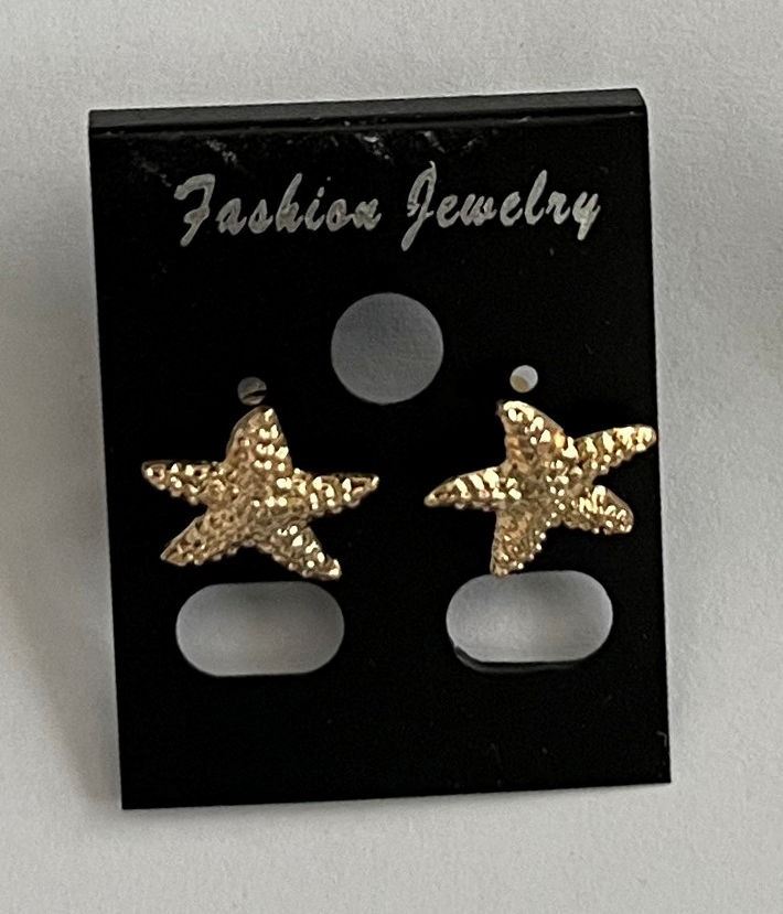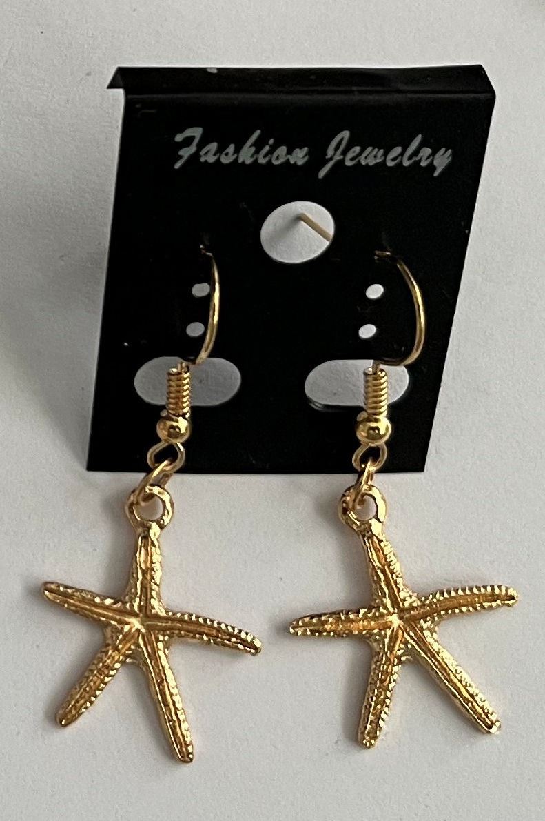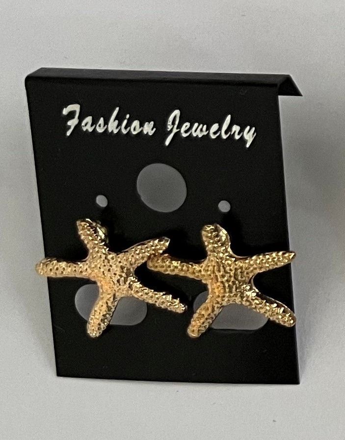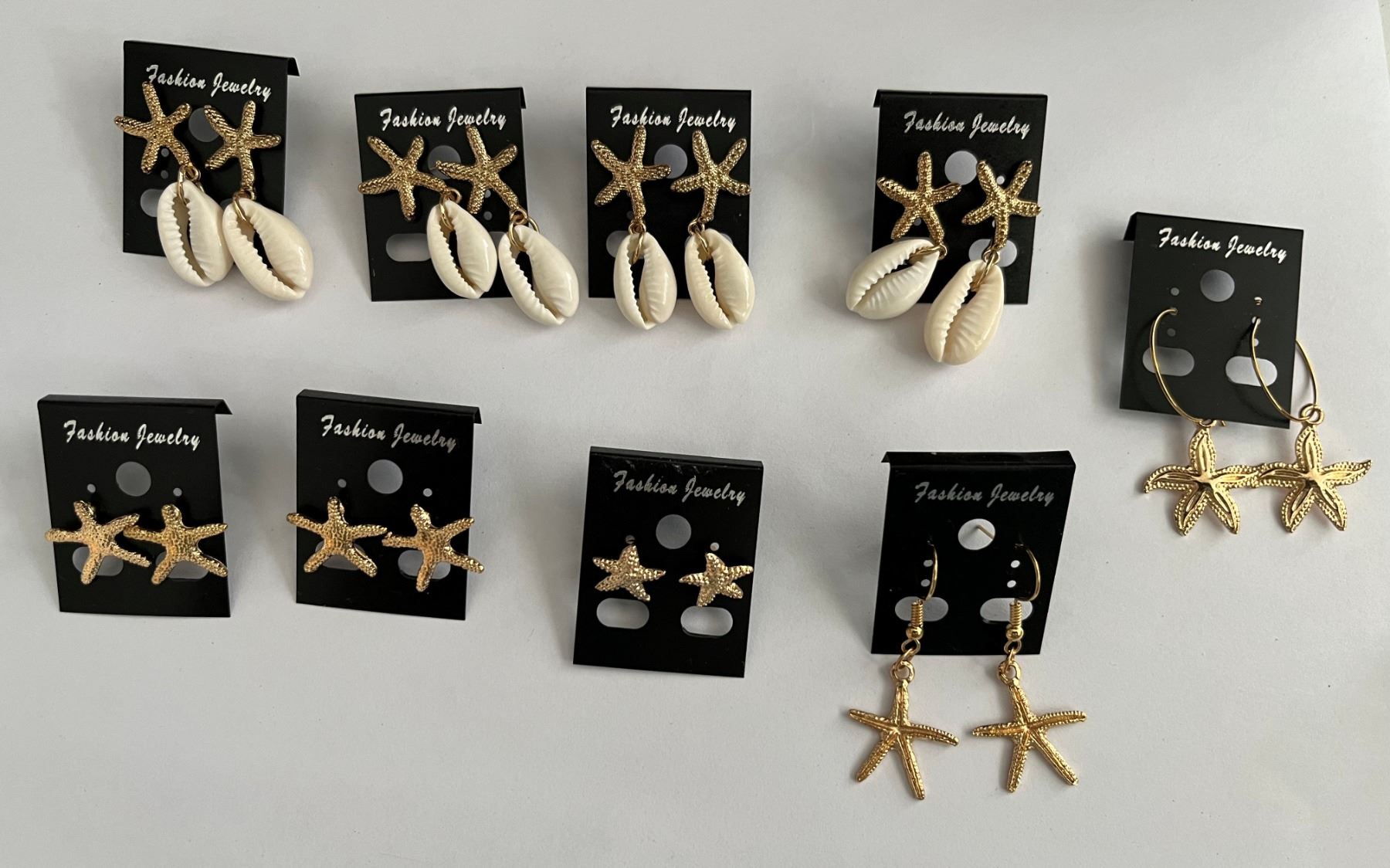 Qty 9 Pair Gold-Tone Starfish & Shell Pierced Earrings, Misc Sizes