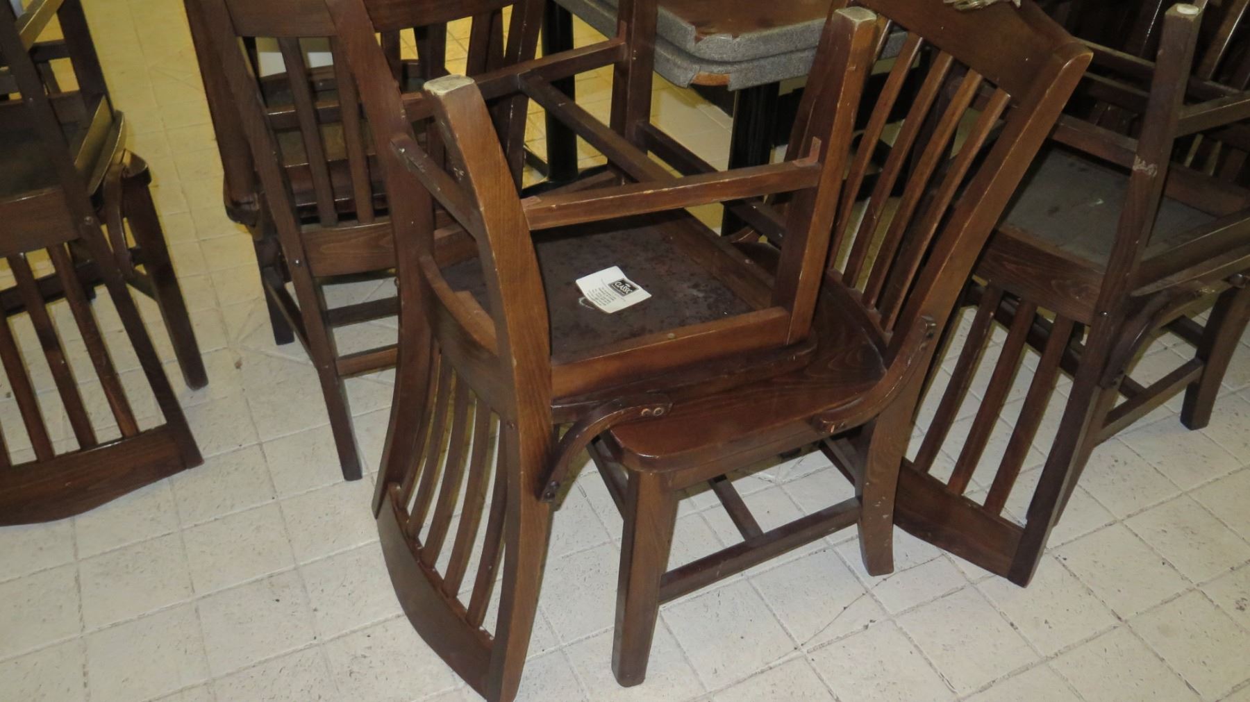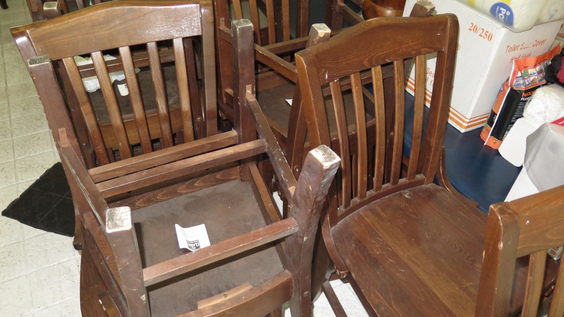 Qty 9 Tables & 30 Wooden Chairs (Varying Degrees of Wear)