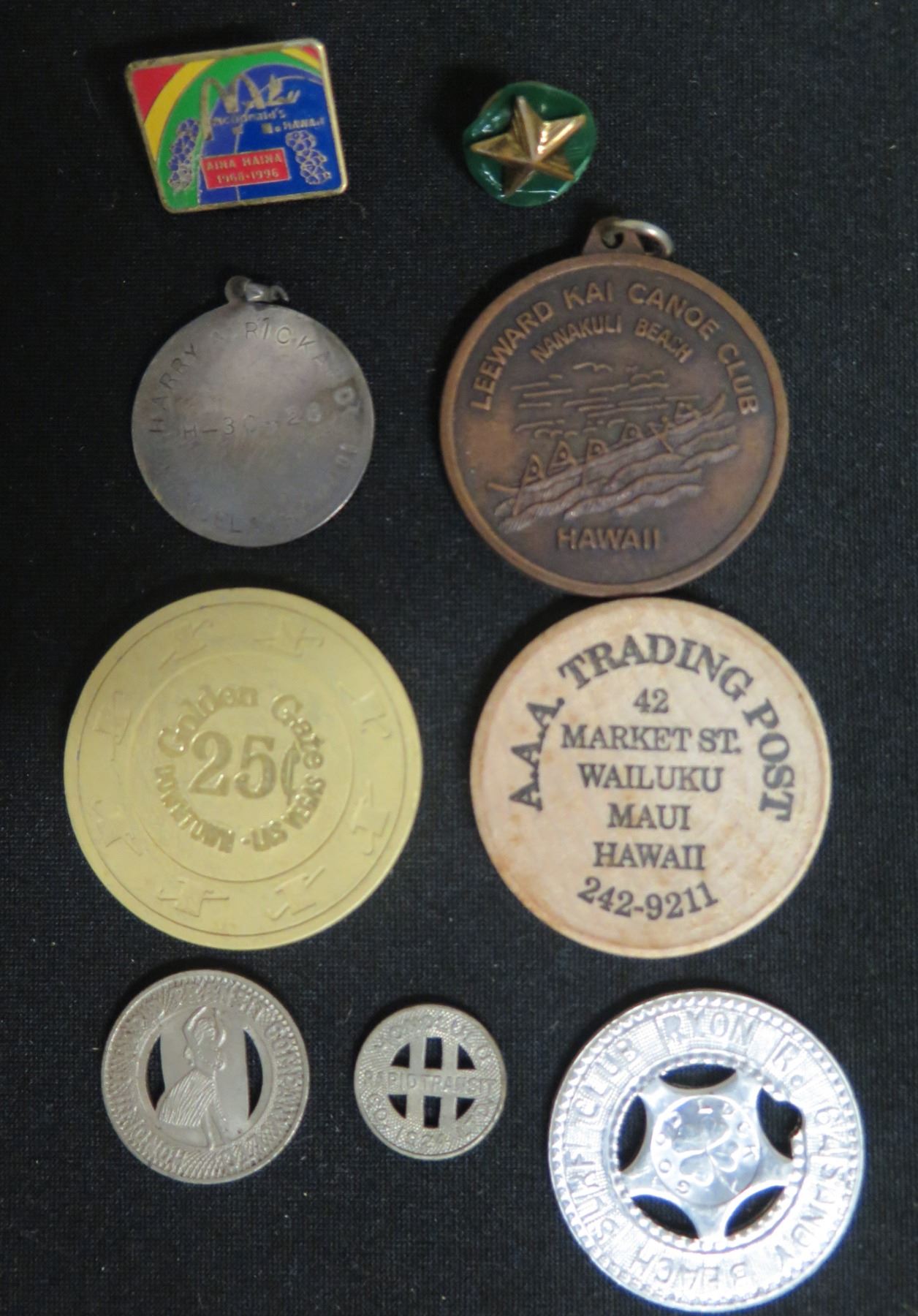 Qty 9 Tokens & Medals: McDonald's Hawaii, Leeward Kai Canoe Club, Rapid Transit, etc