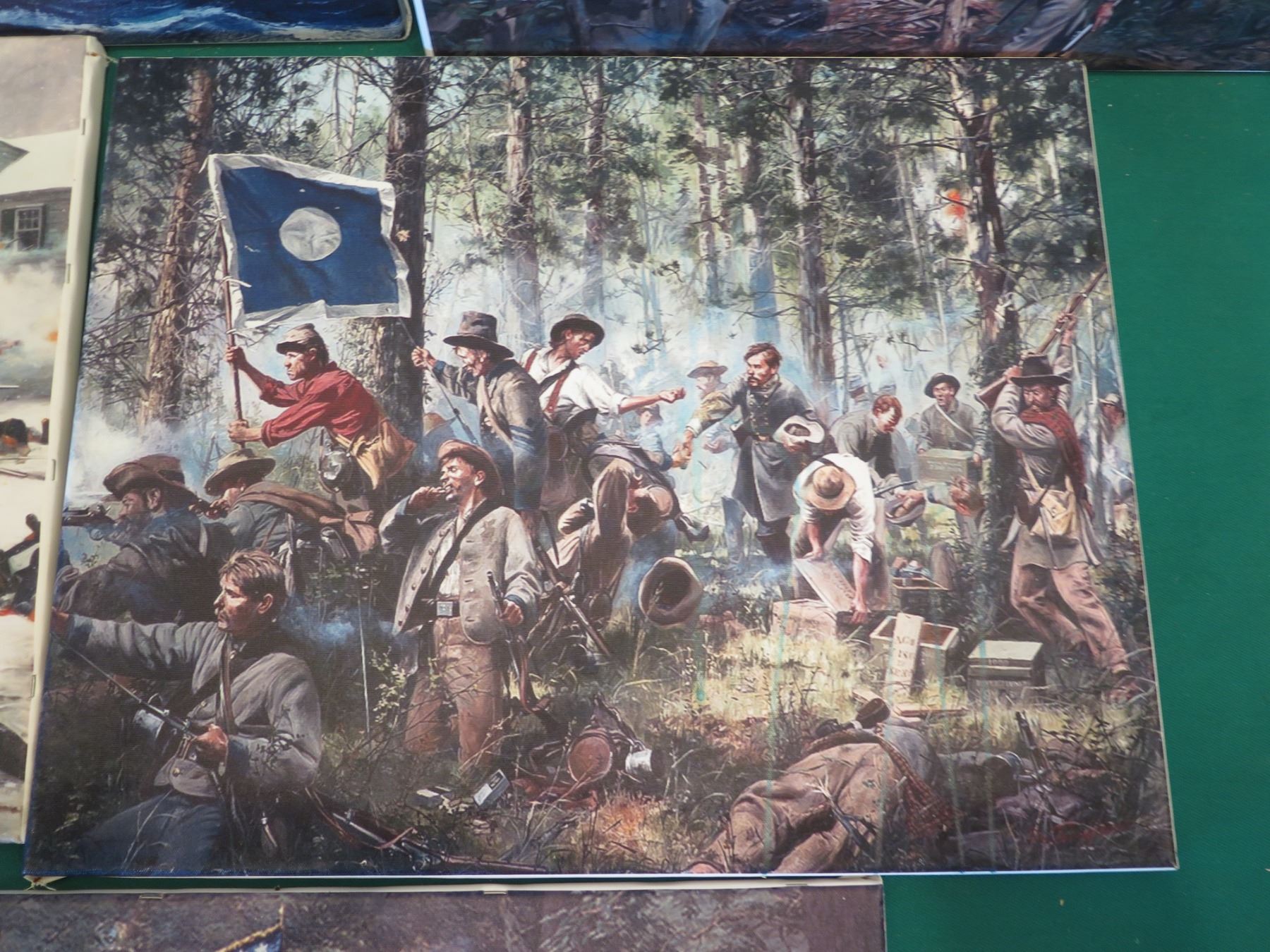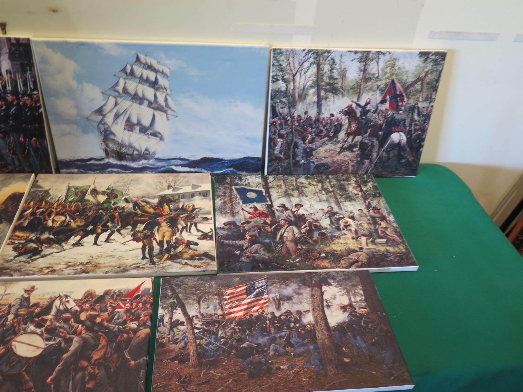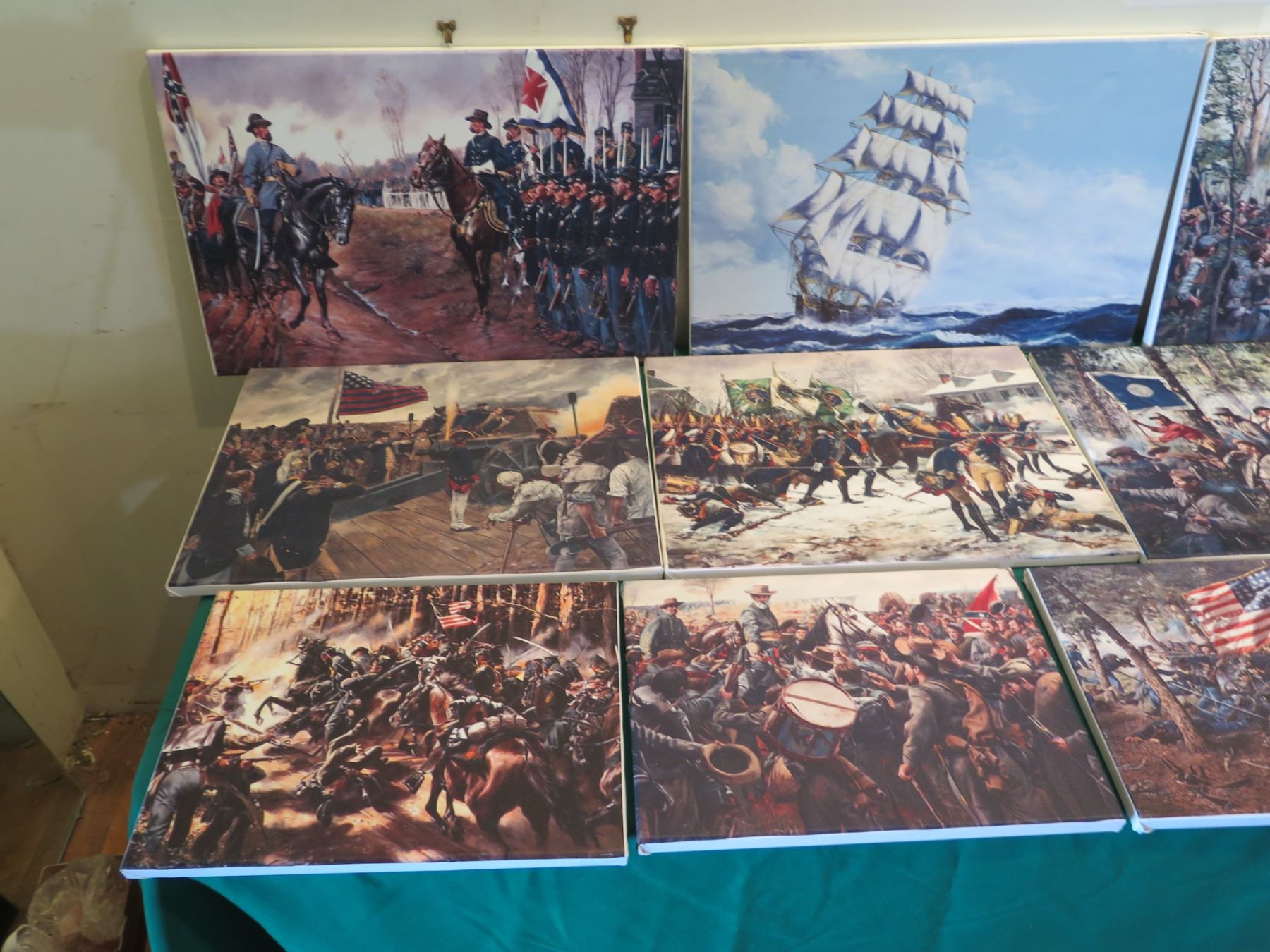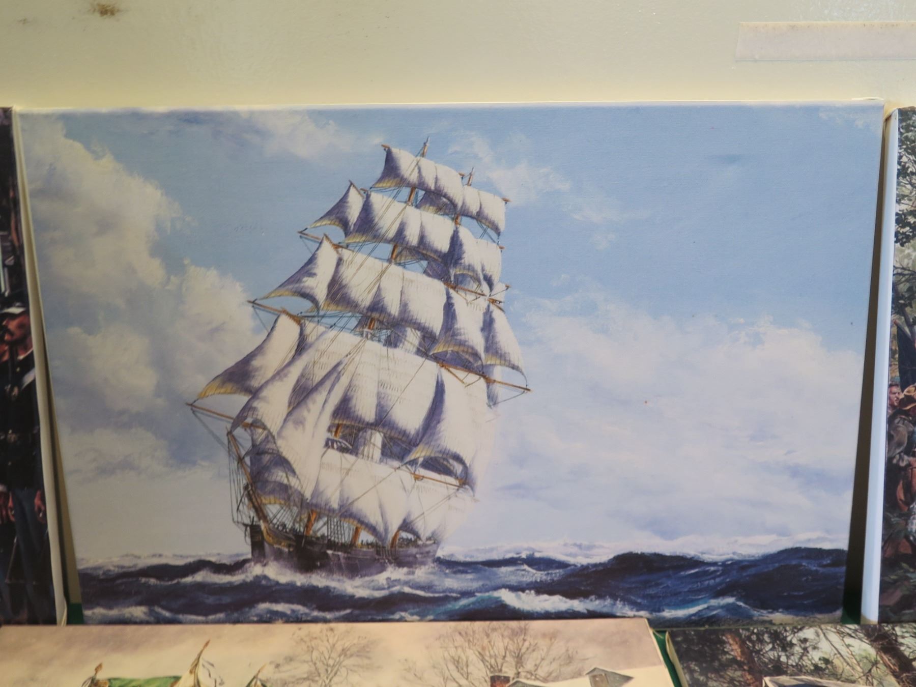 Qty 9 Unframed Artwork: Clipper Ships, Military Battles, etc Misc Sizes