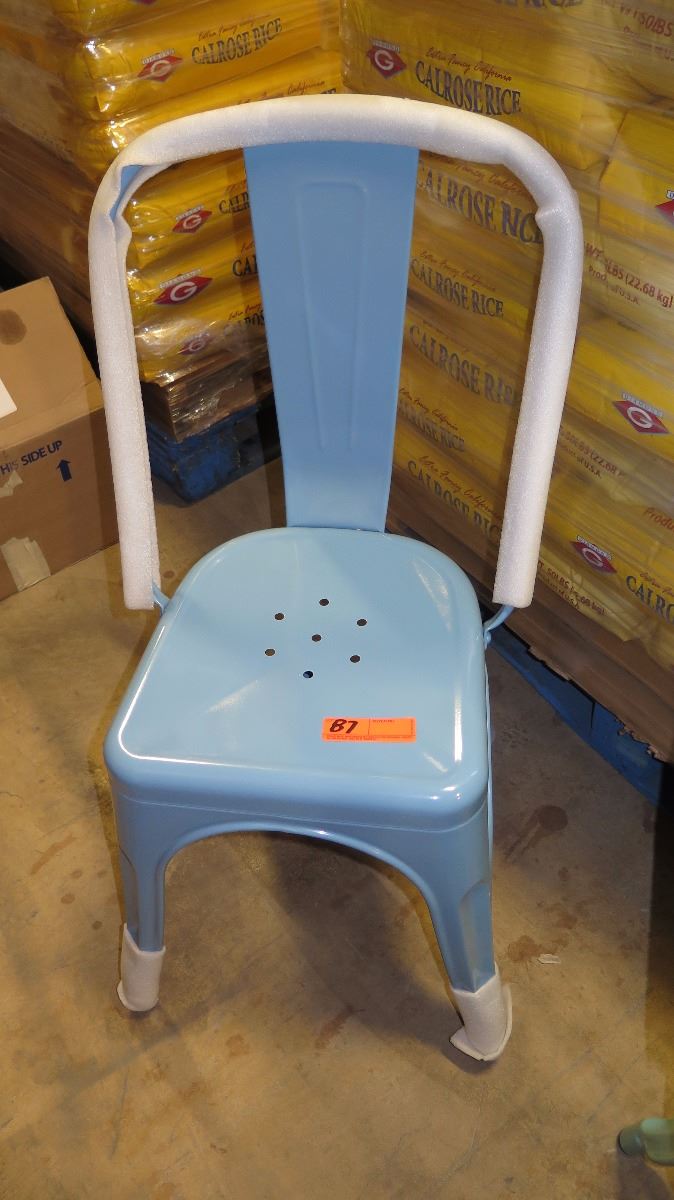 Qty 9 Unused Retro Style Metal Chairs (Blue) - From Magnolia Cafe & Bakery
