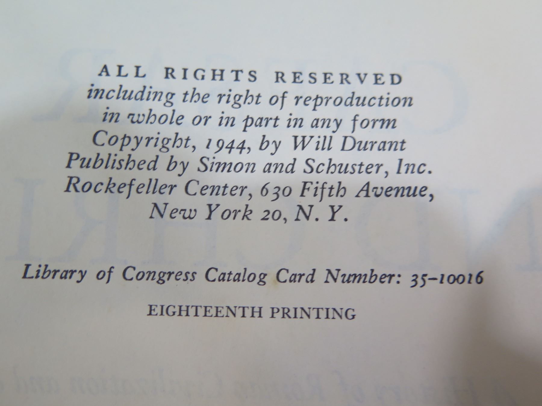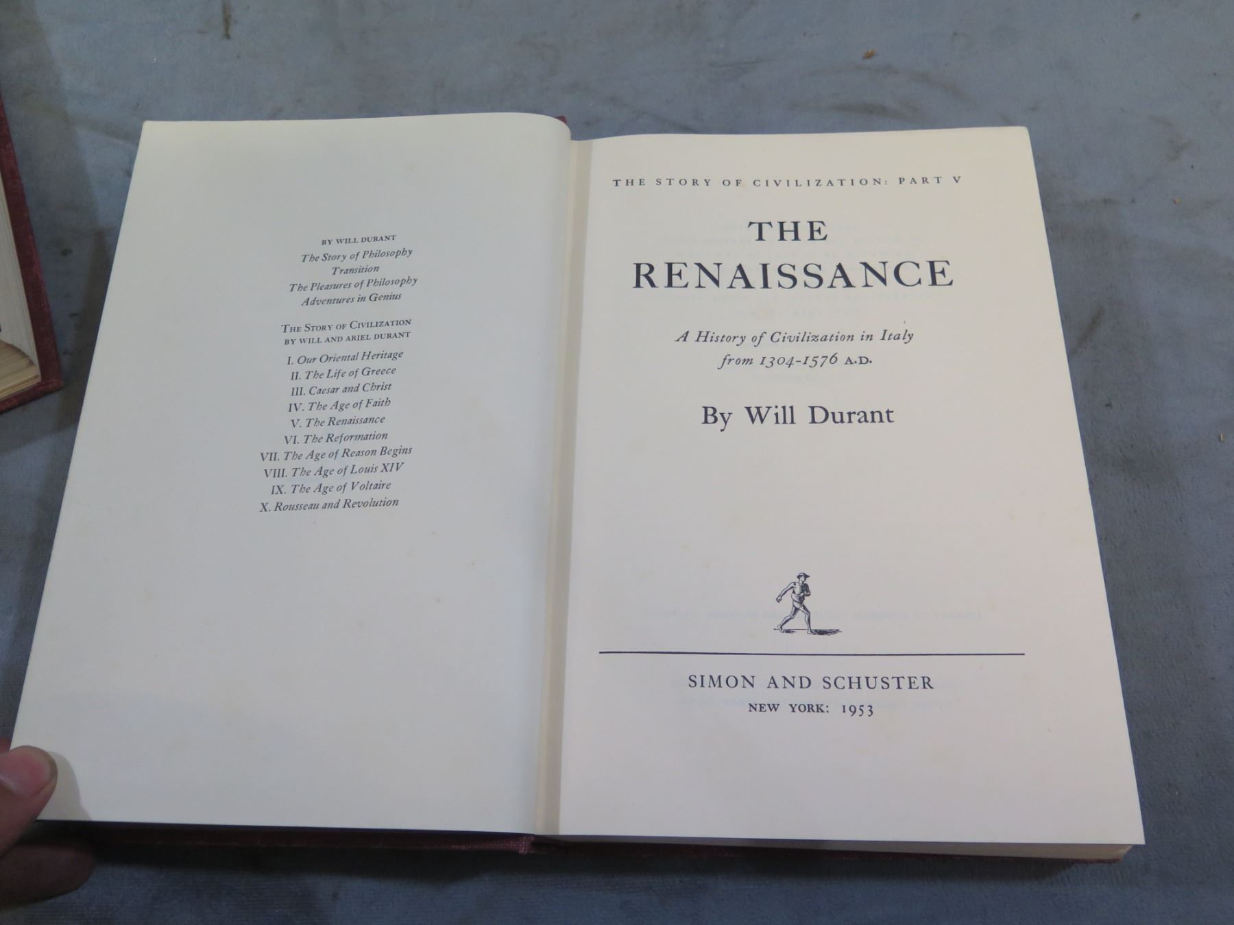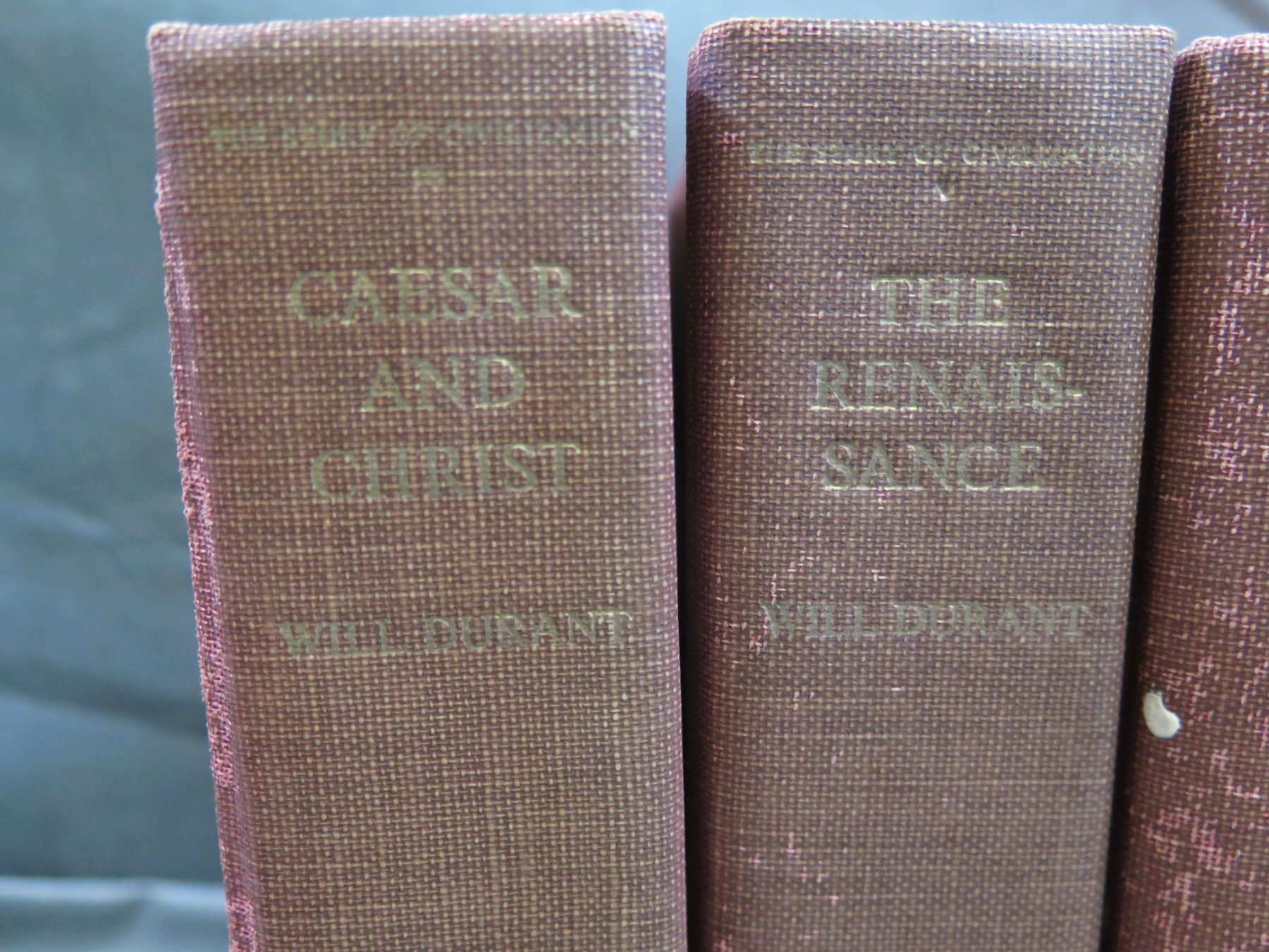 Qty 9 Vintage Will Durant Books: Caesar & Christ 1944, The Renaissance 1953, etc