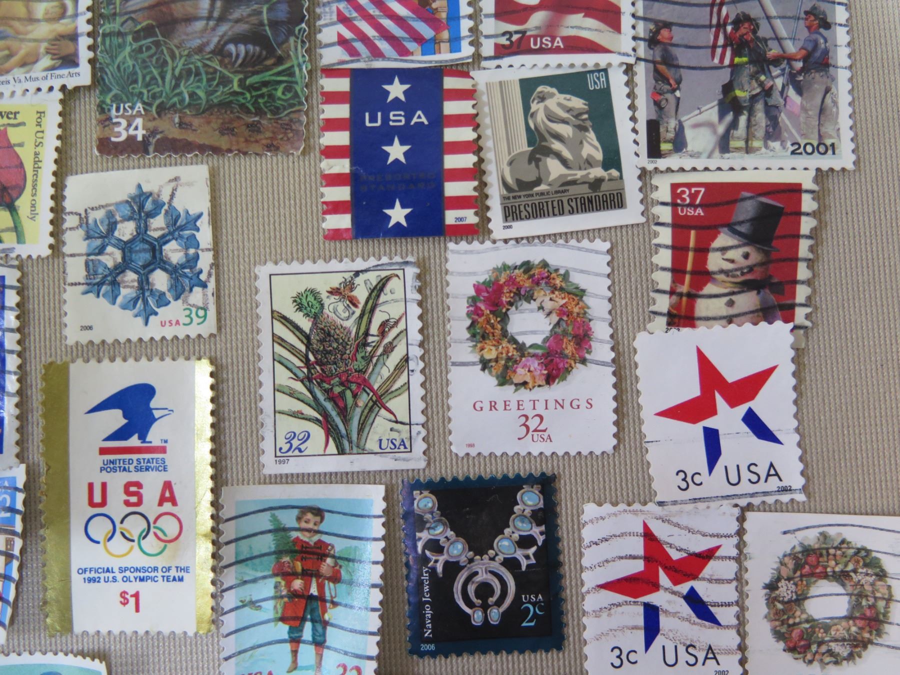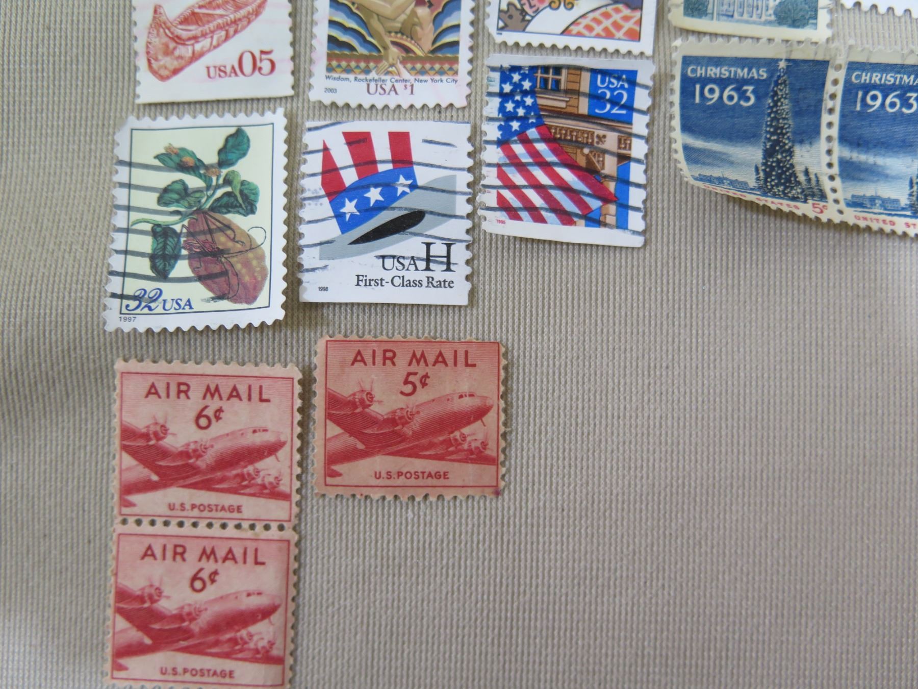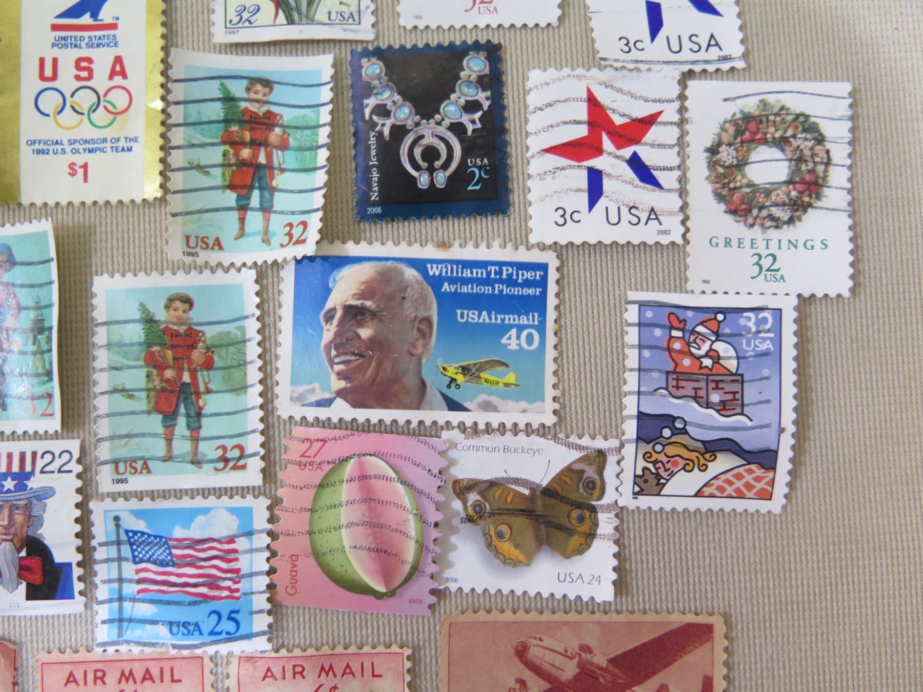 Qty 90+ USA Stamps: Audrey Hepburn, Christmas, Olympics, Canoes, Airplanes, etc