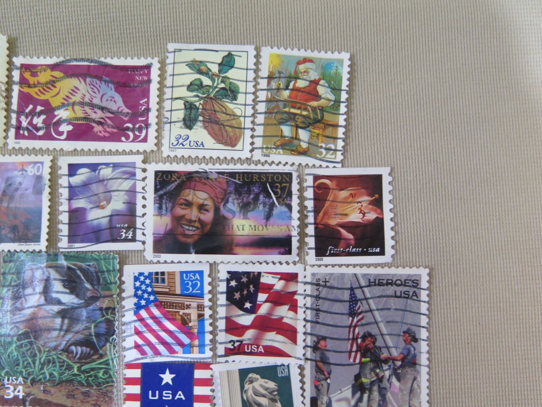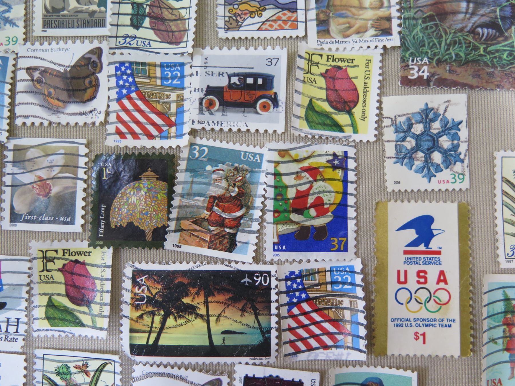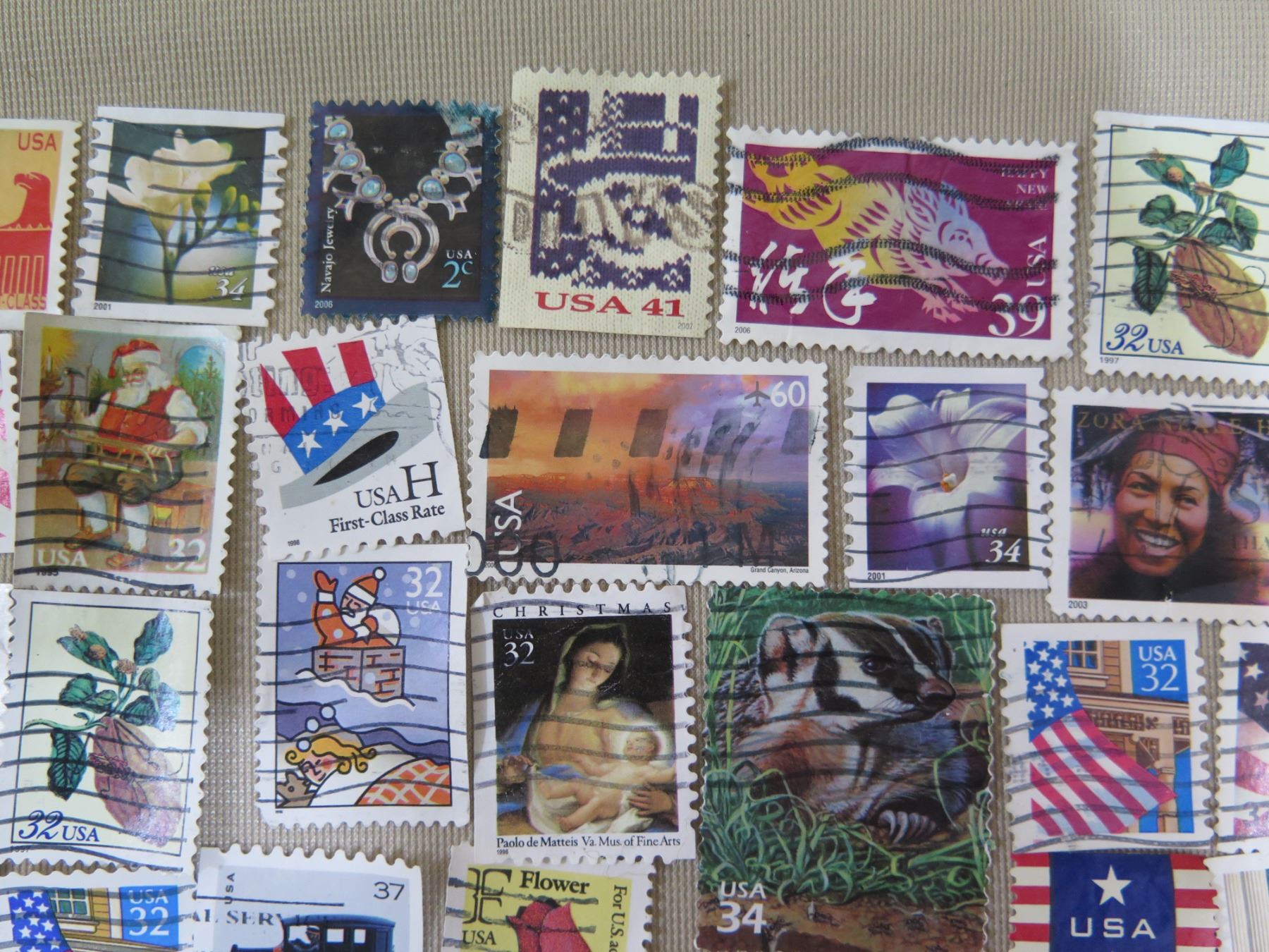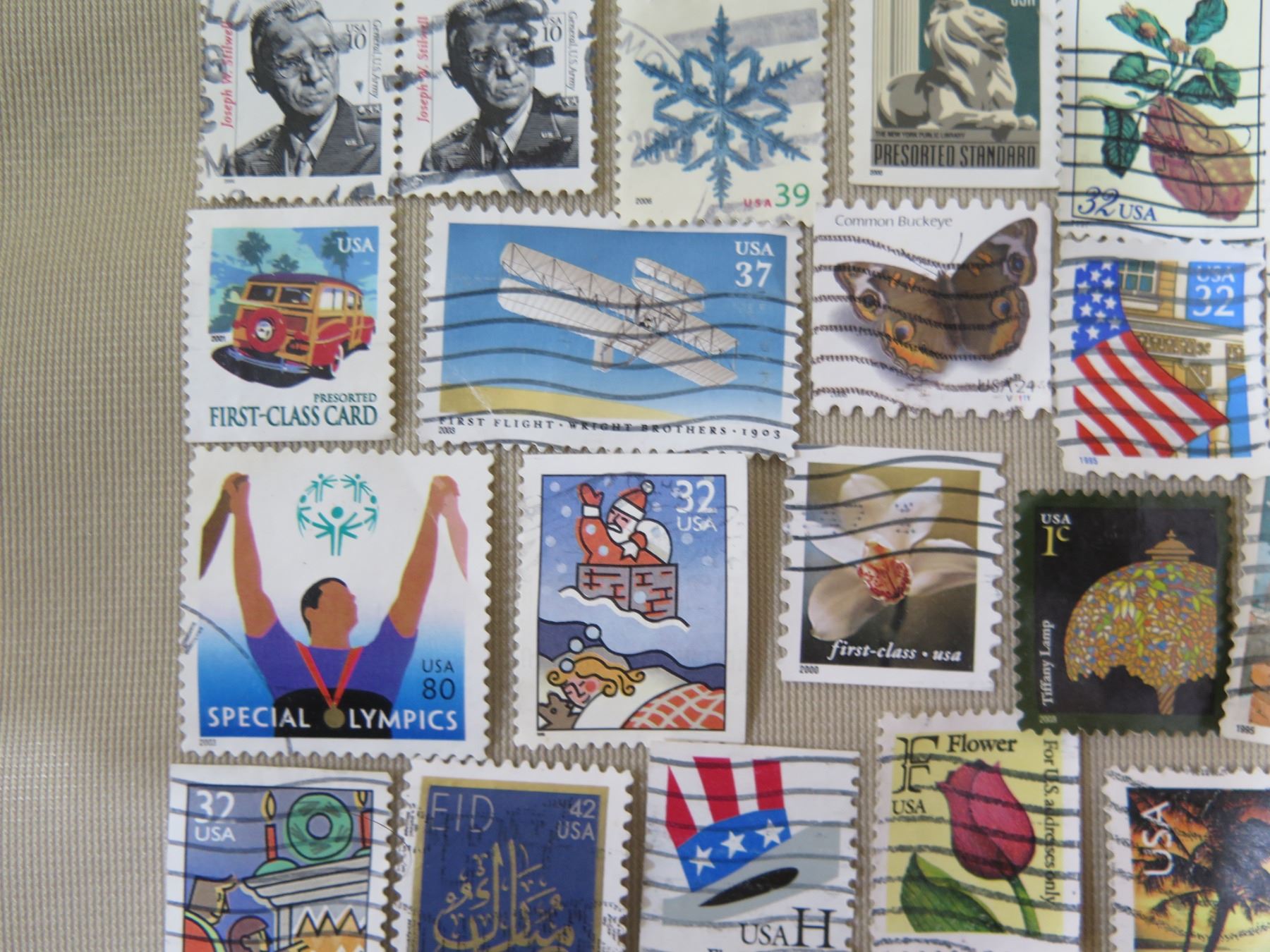 Qty 90+ USA Stamps: Audrey Hepburn, Christmas, Olympics, Canoes, Airplanes, etc