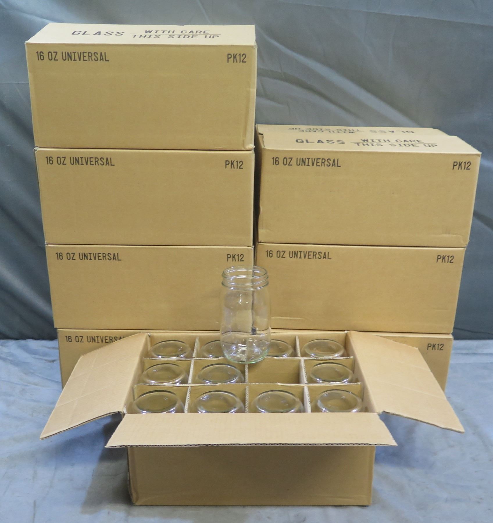 Qty 96 Mason Jars, 16 oz Universal (no lids)