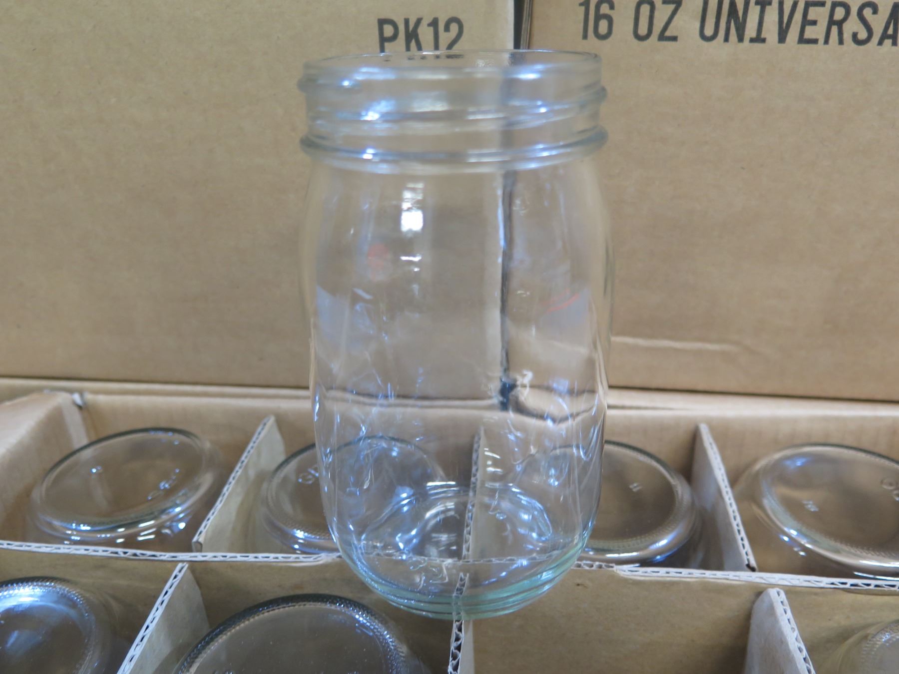 Qty 96 Mason Jars, 16 oz Universal (no lids)