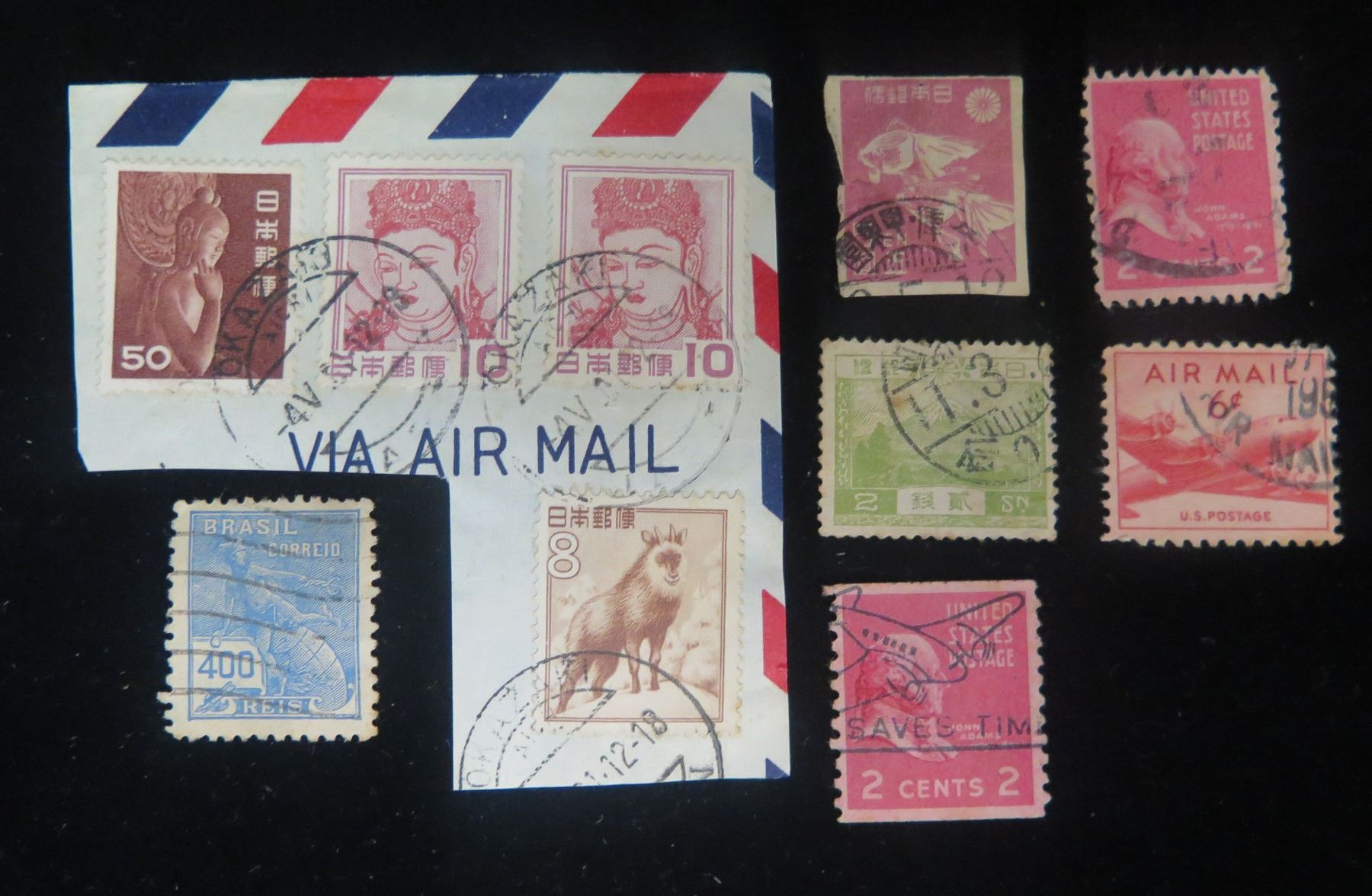 Qty Approx. 10 Collectible Stamps: Brasil, Japan, US Postage Misc Value, etc