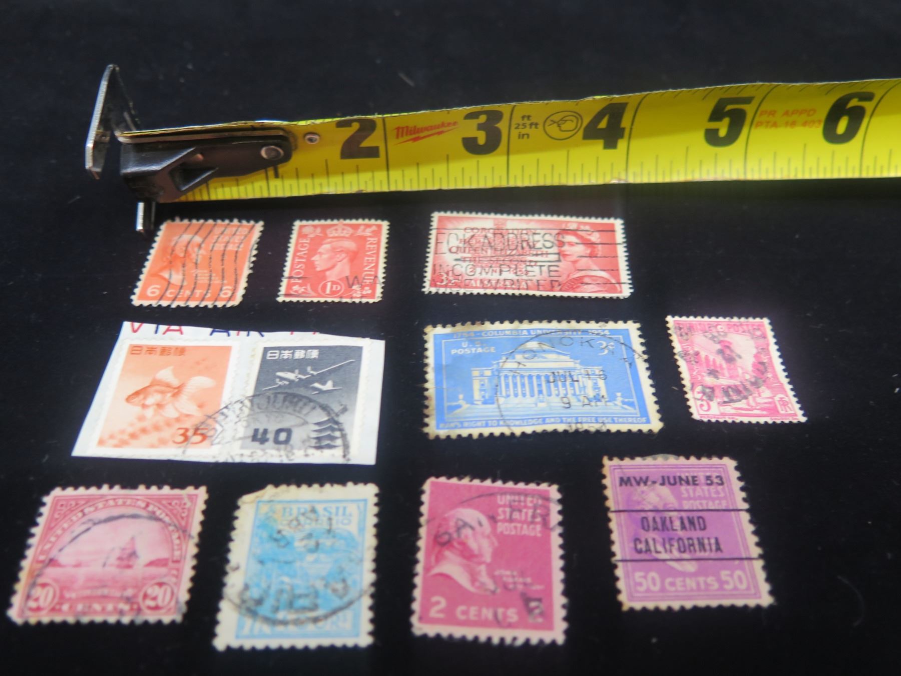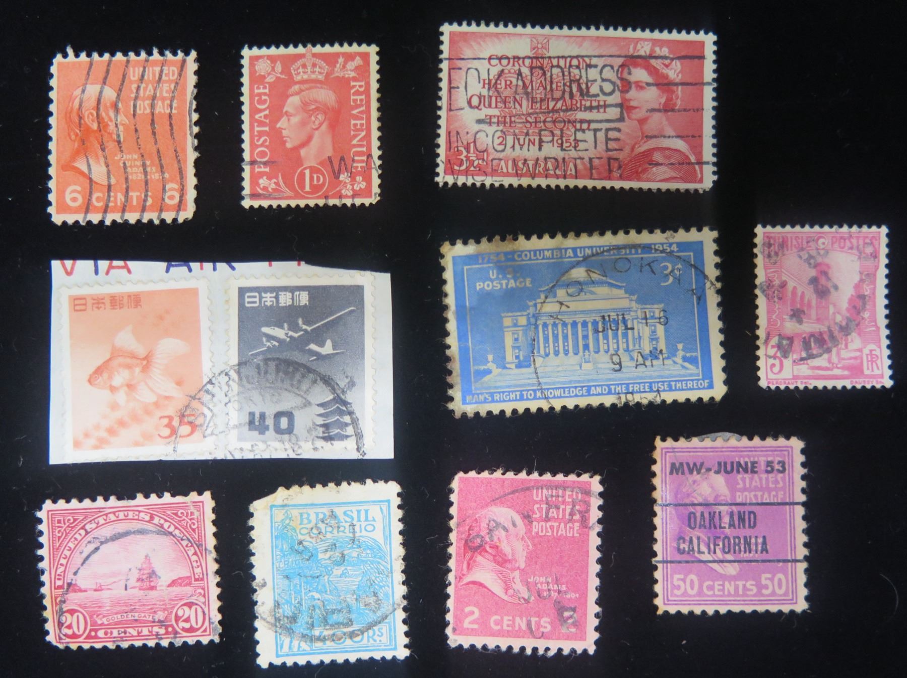 Qty Approx. 10 Collectible Stamps: Queen Elizabeth, Brasil, US Postage Misc Value, etc