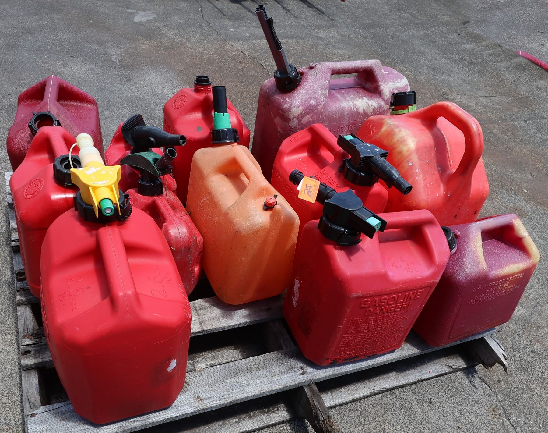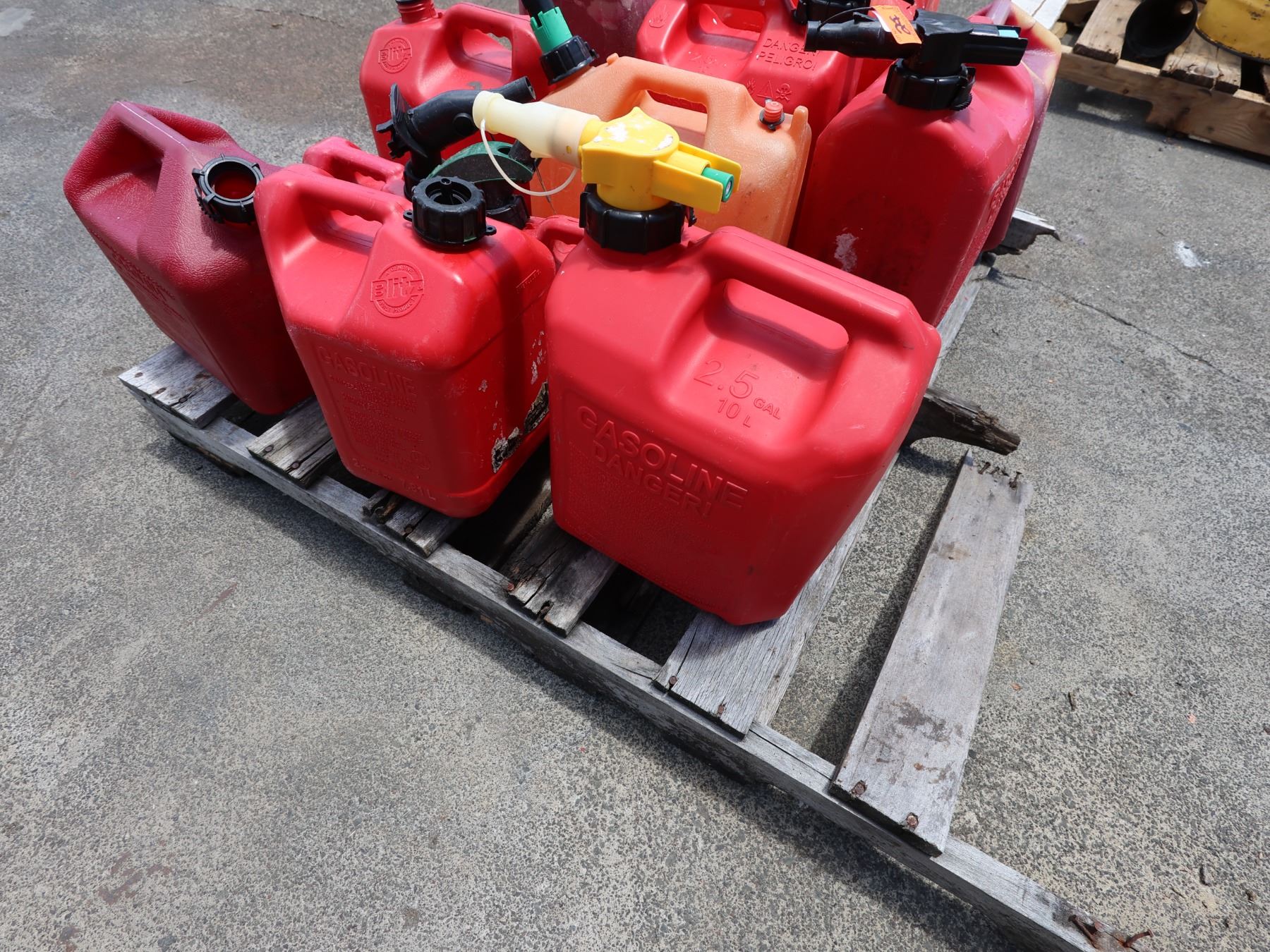 Qty Approx. 12 Plastic Gas Cans, Misc Sizes