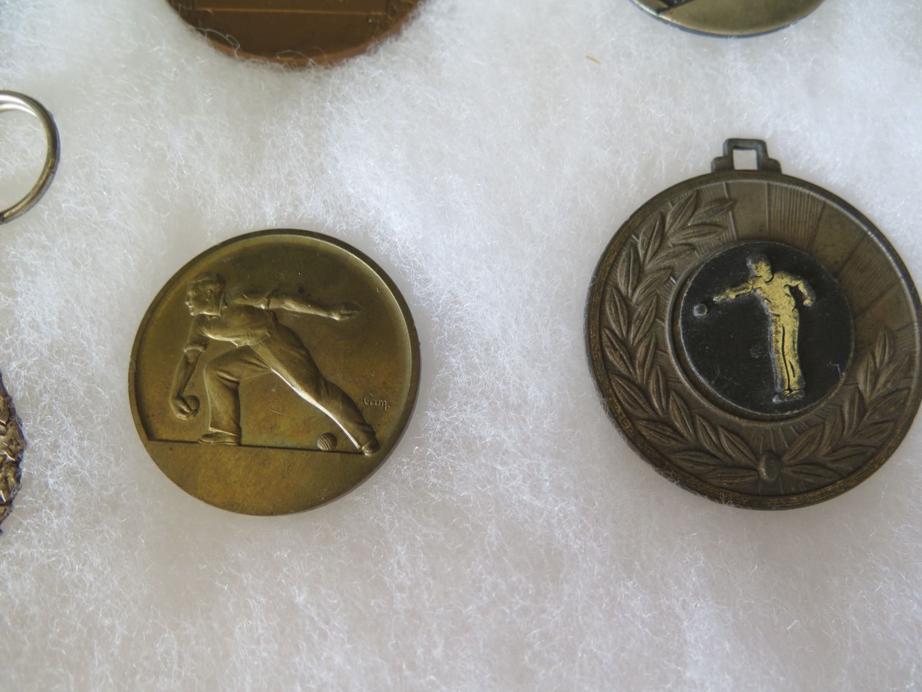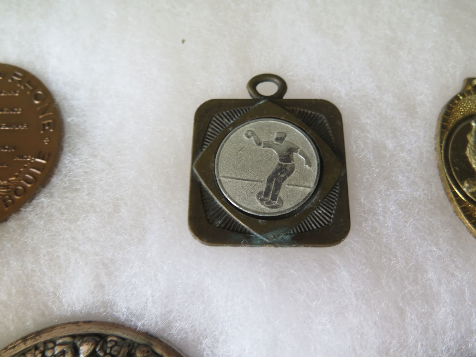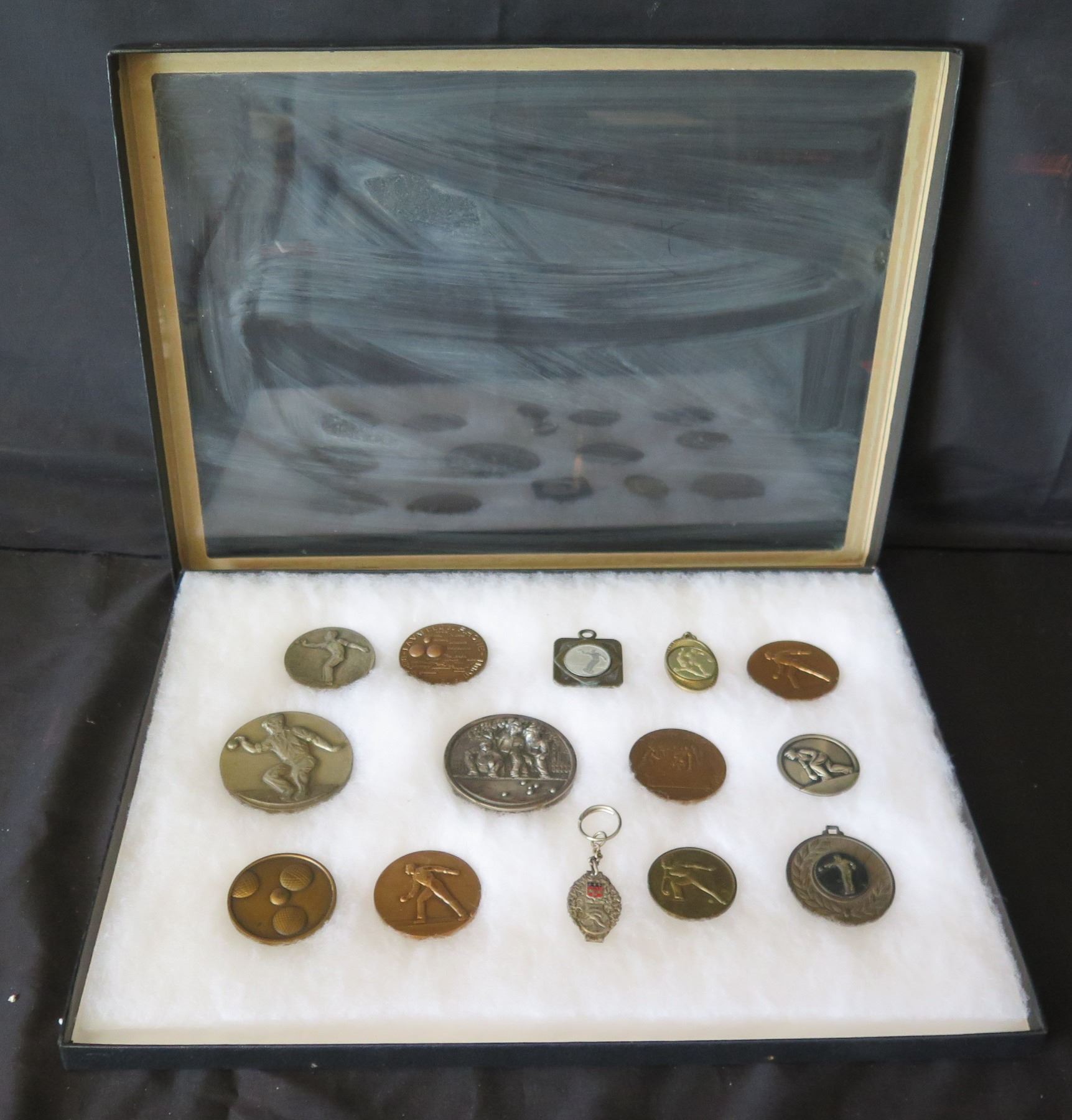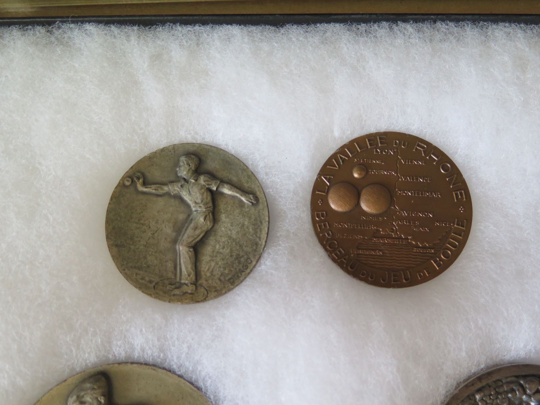 Qty Approx. 14 Medals & Coins: Athletes, La Vallee du Rhone, etc in Display Case 16"L