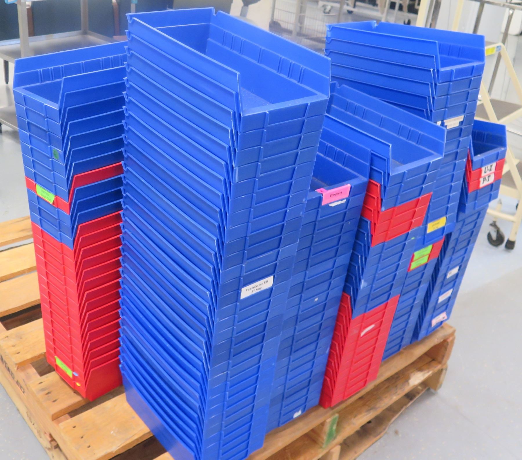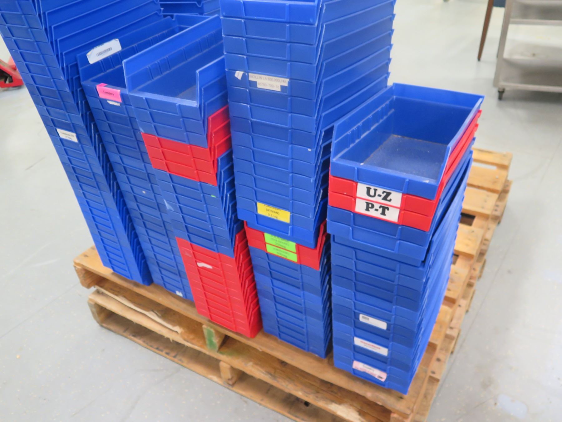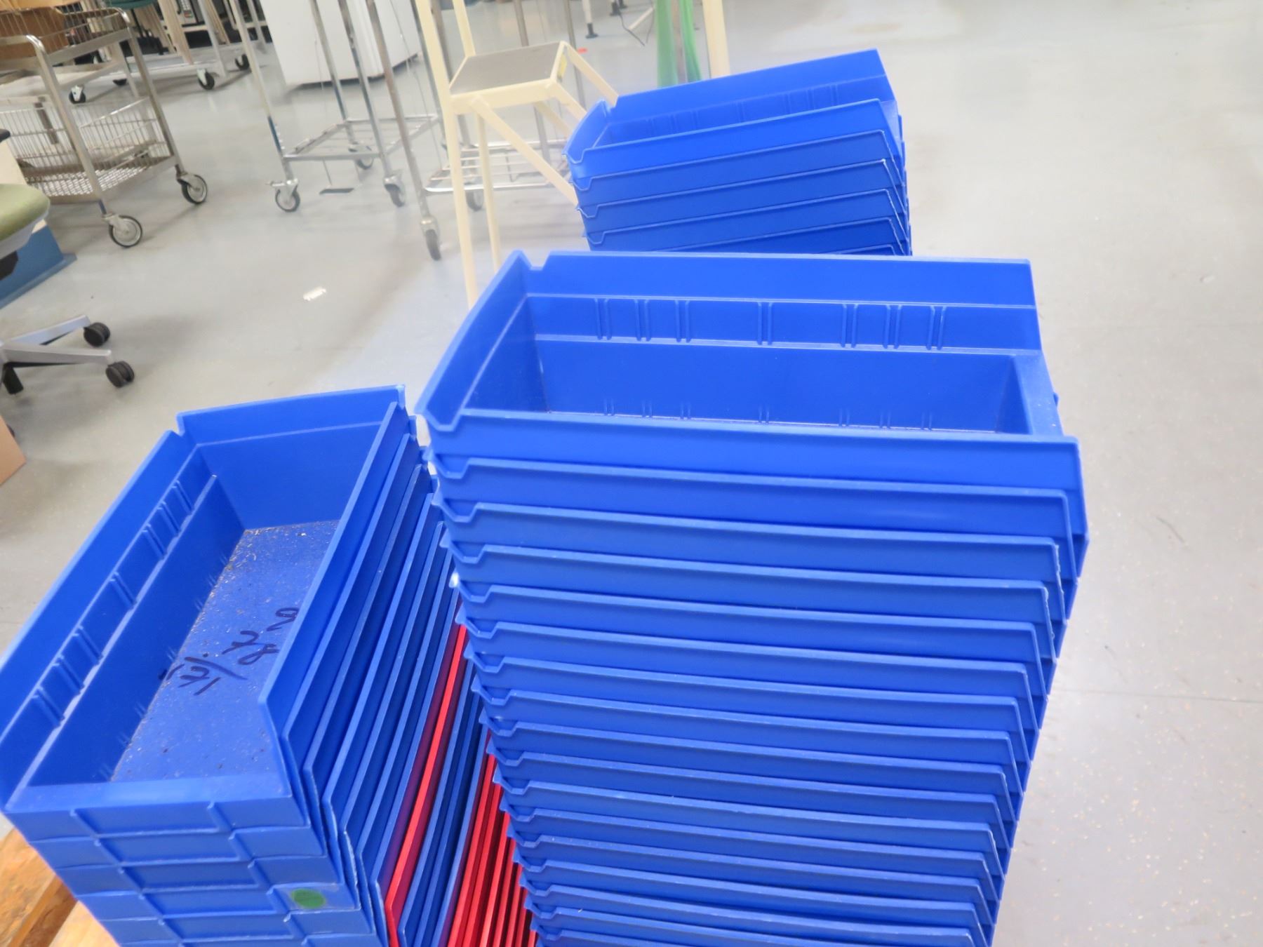 Qty Approx. 170+ Akro-Mils 30-130 Plastic Shelf Bins, Red & Blue