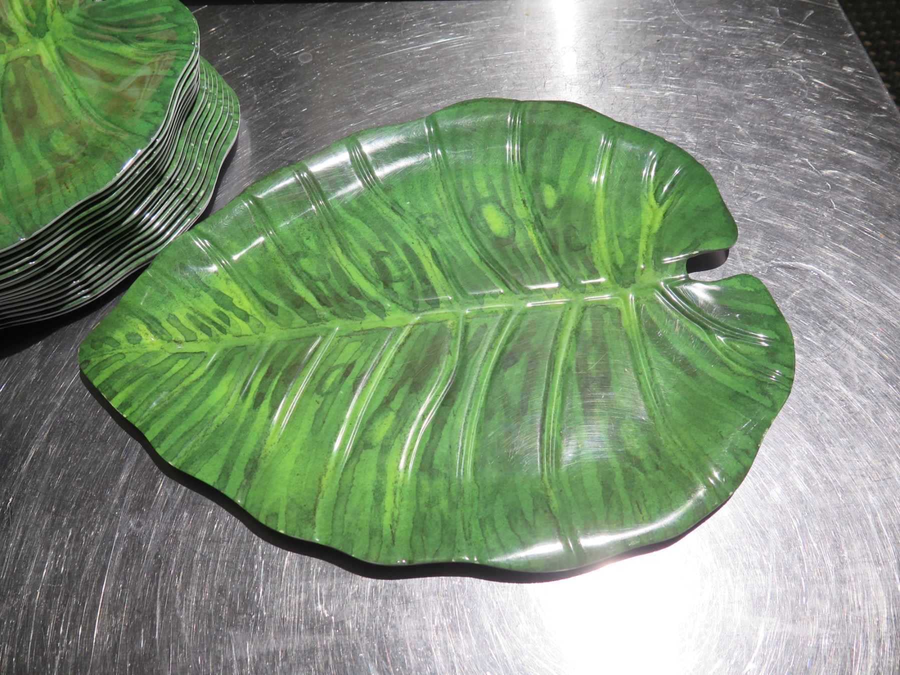 Qty Approx. 18 Green Leaf Serving Plates 16"L