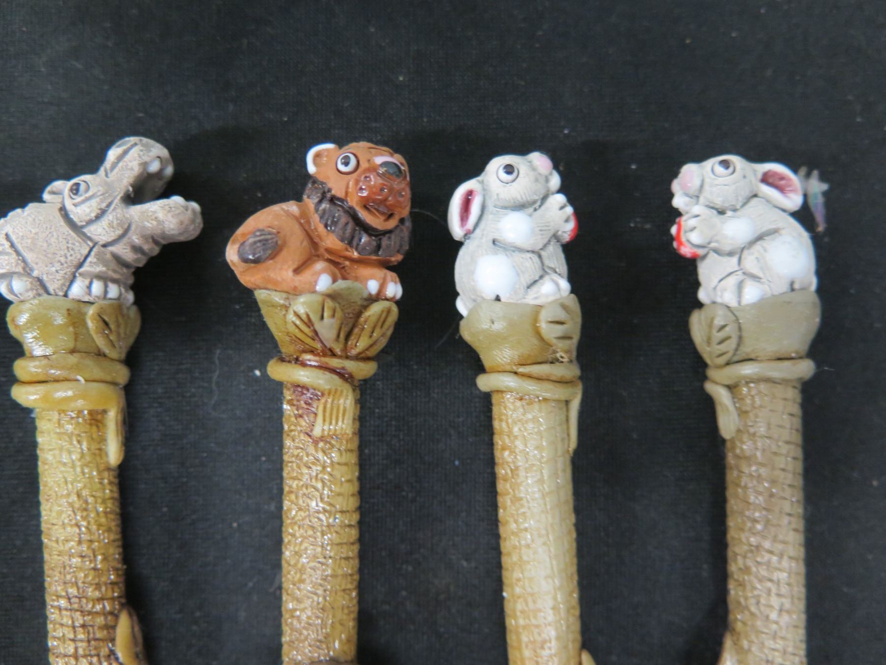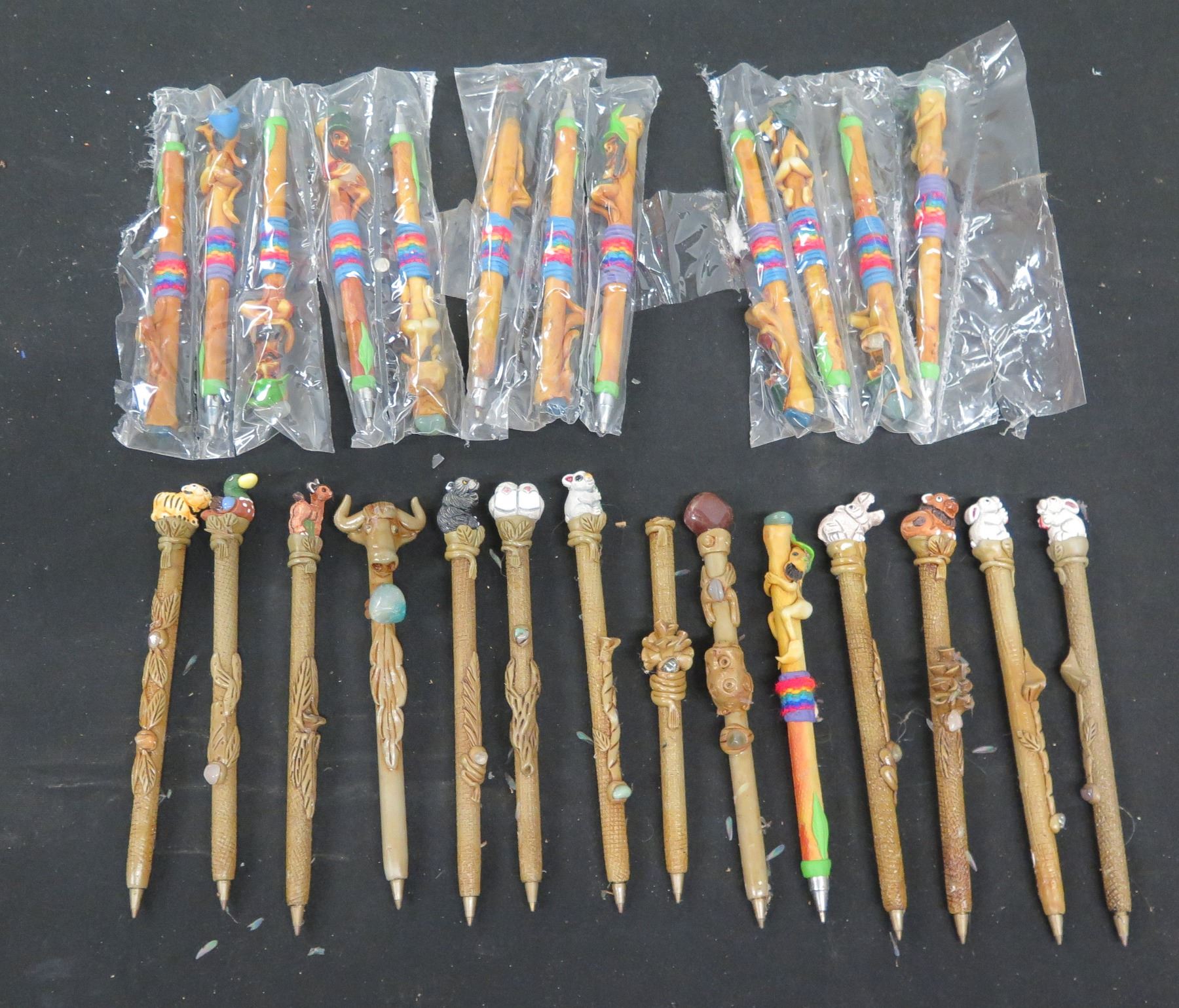 Qty Approx. 20 Pens w/ Wood Design & Duck, Ram, Tiger, Rabbit, Misc Animal Tops