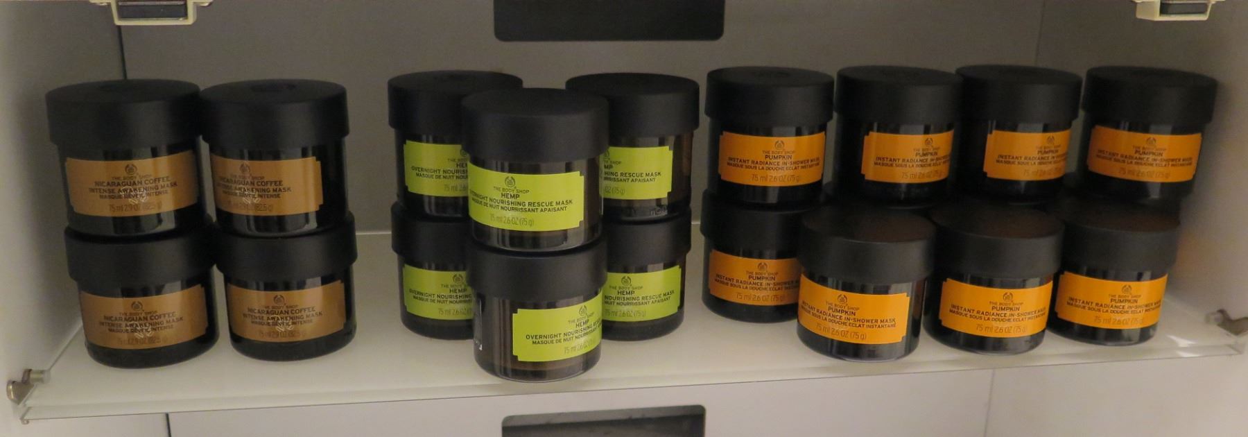 Qty Approx. 21 Jars The Body Shop Coffee Awakening Mask, Hemp Rescue Mask & Pumpkin Mask