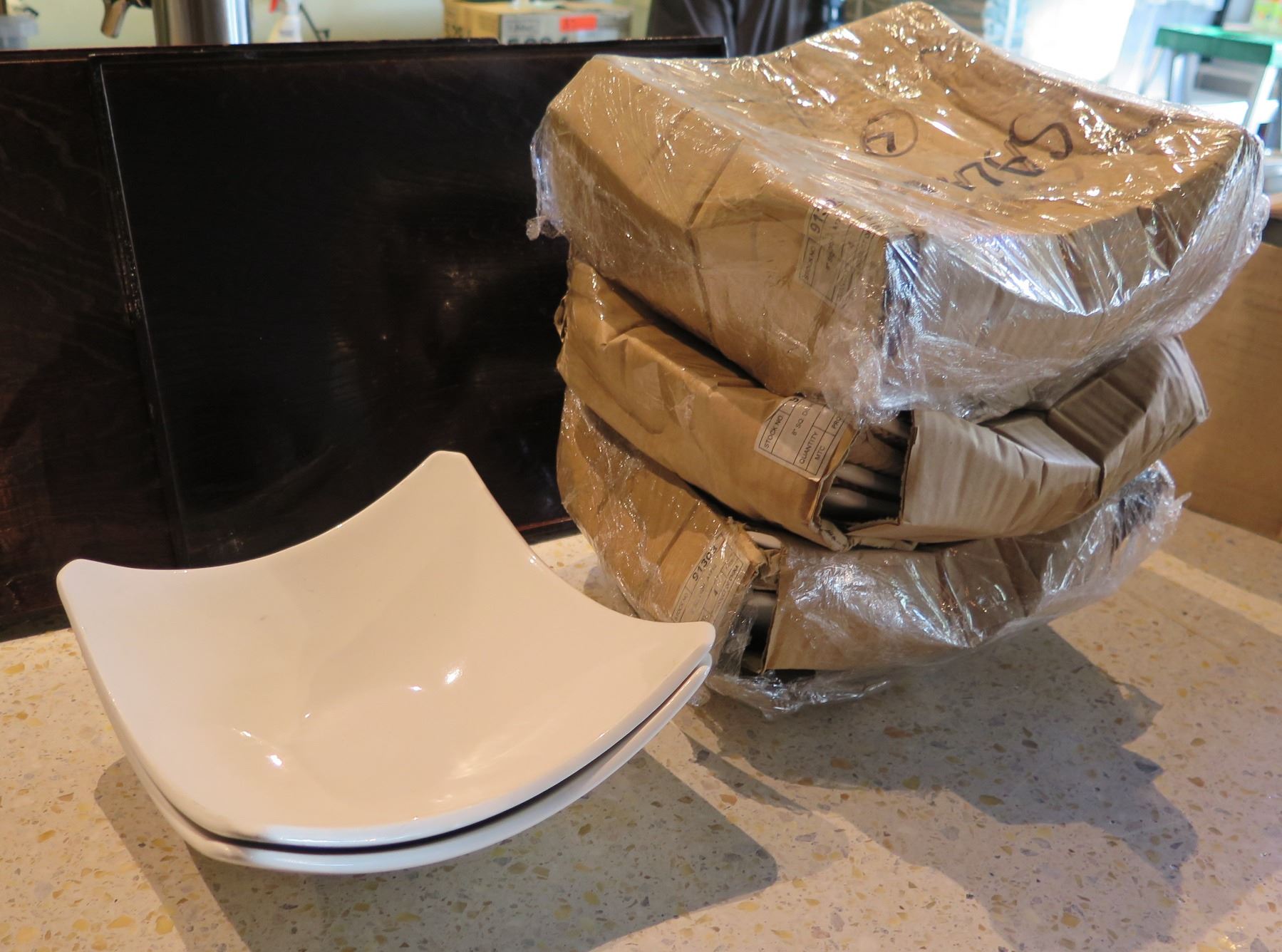 Qty Approx. 22 Curved Square Porcelain Bowls, 8.5" W