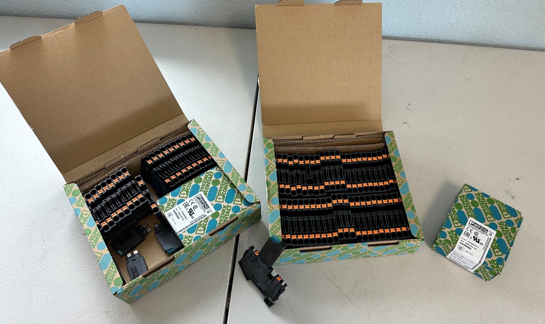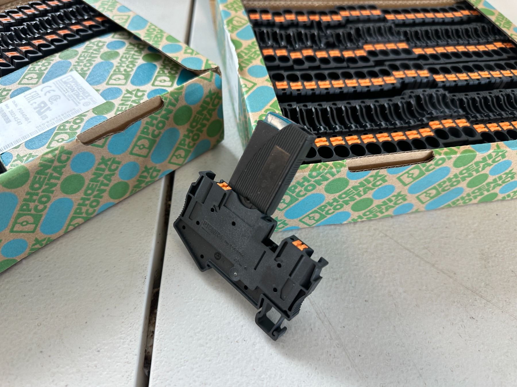 Qty Approx. 50 Misc Phoenix Contact Breaker Boxes New w/ 0.1A Breakers & a 10ish 0.5a Breakers