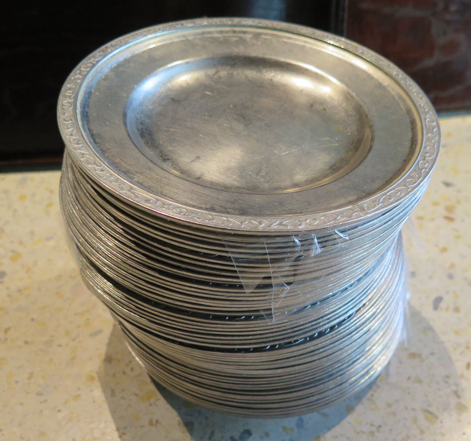 Qty Approx. 53 Round Metal Plates 7" dia