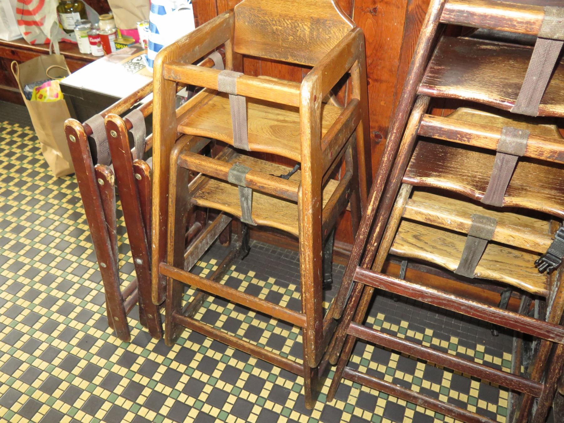 Qty Approx. 7 Wooden Baby Stackable High Chairs