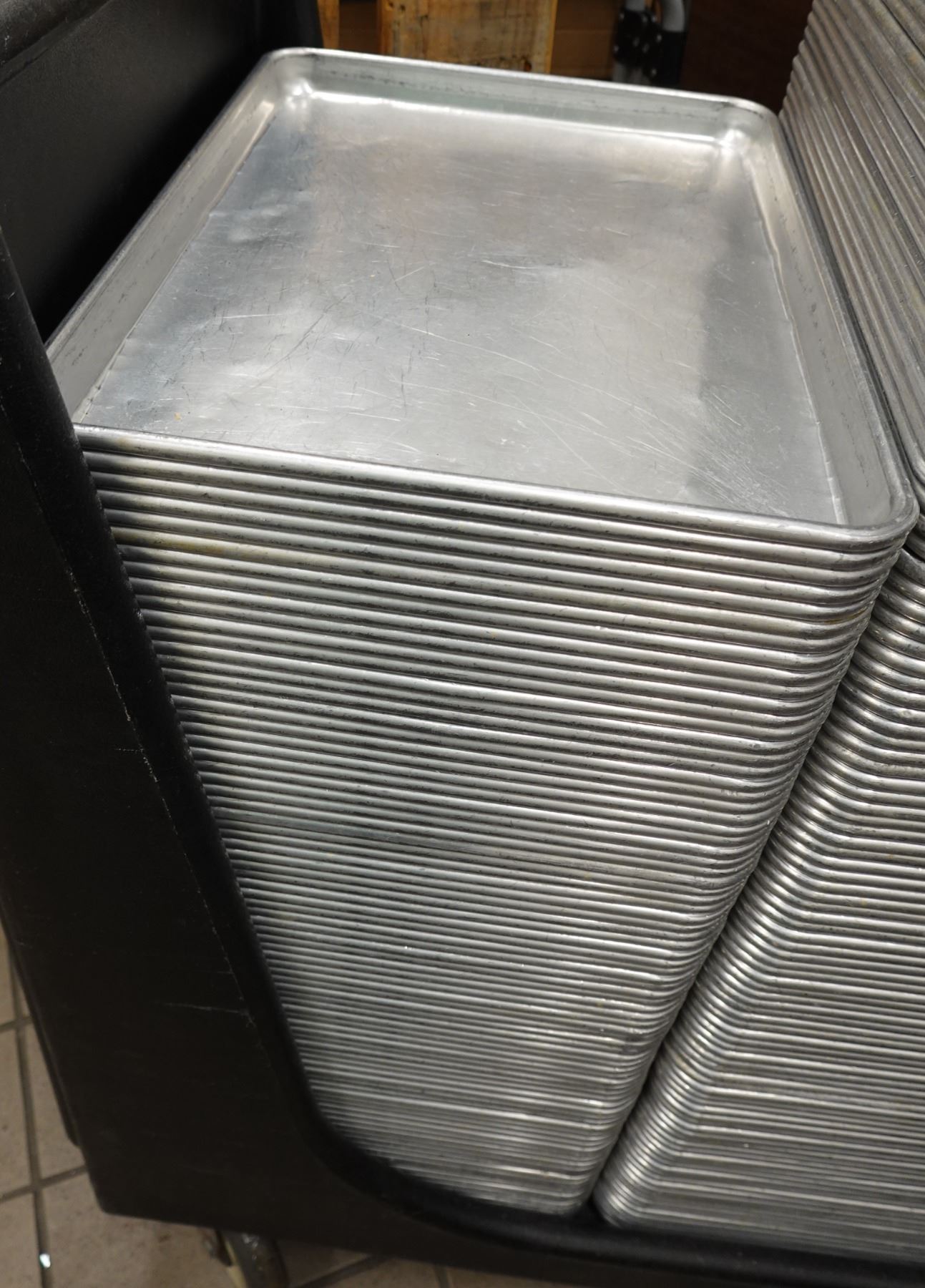 Qty Approx. 76 Vollrath 5303 Sheet Pans 18"x13" (used). Note: This item is large, heavy and may have sharp edges or grease. Removal is at buyer's risk; bring tools, equipment & help.