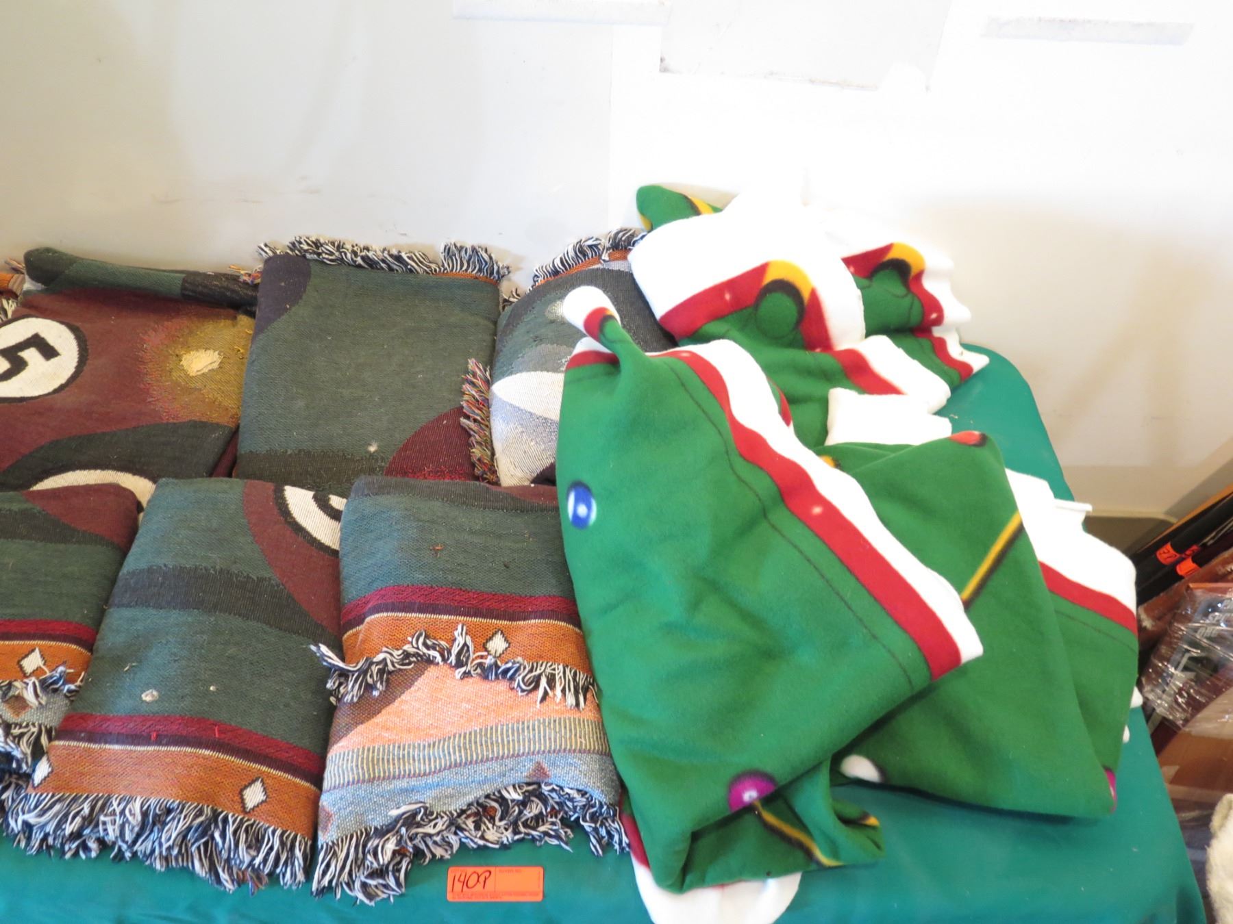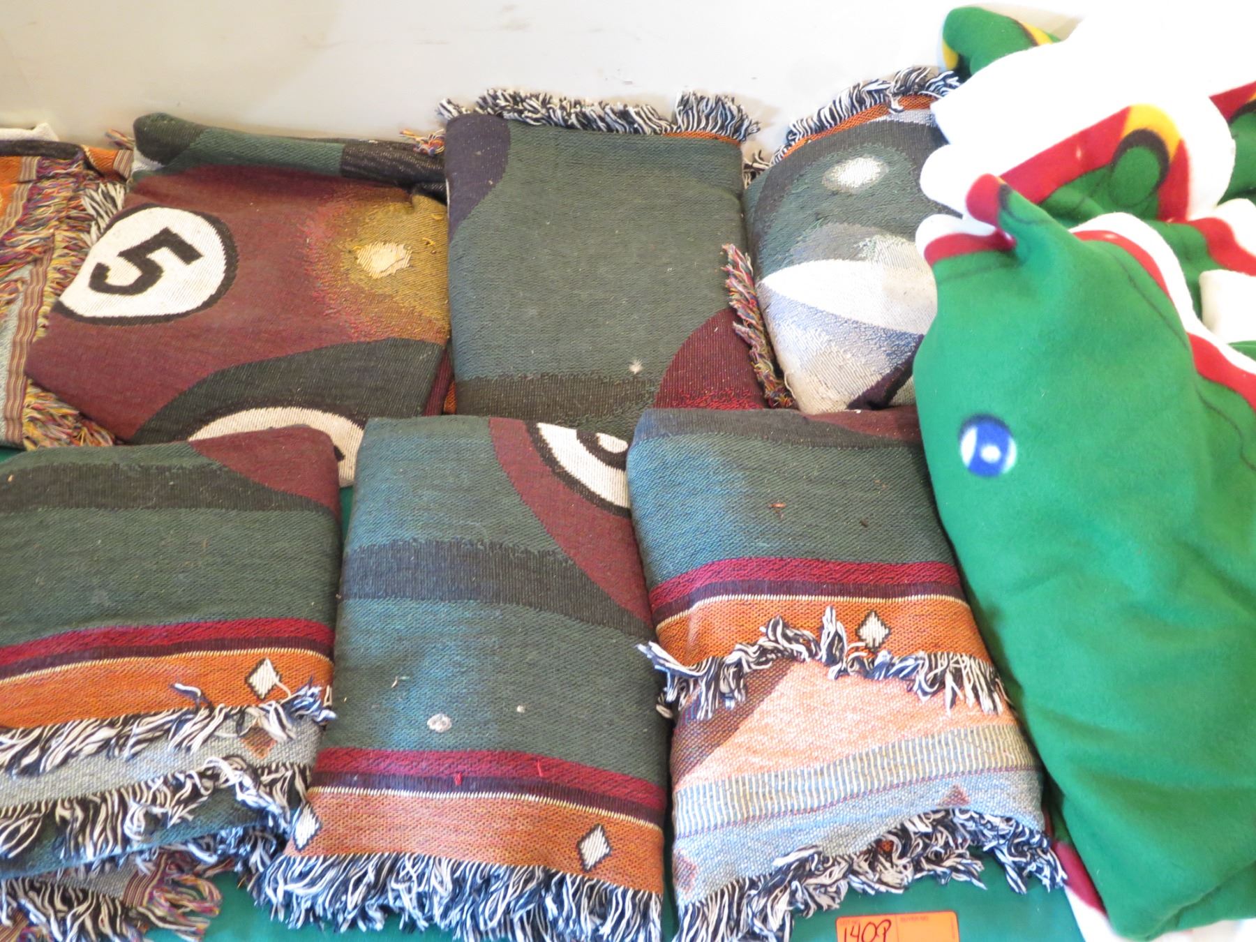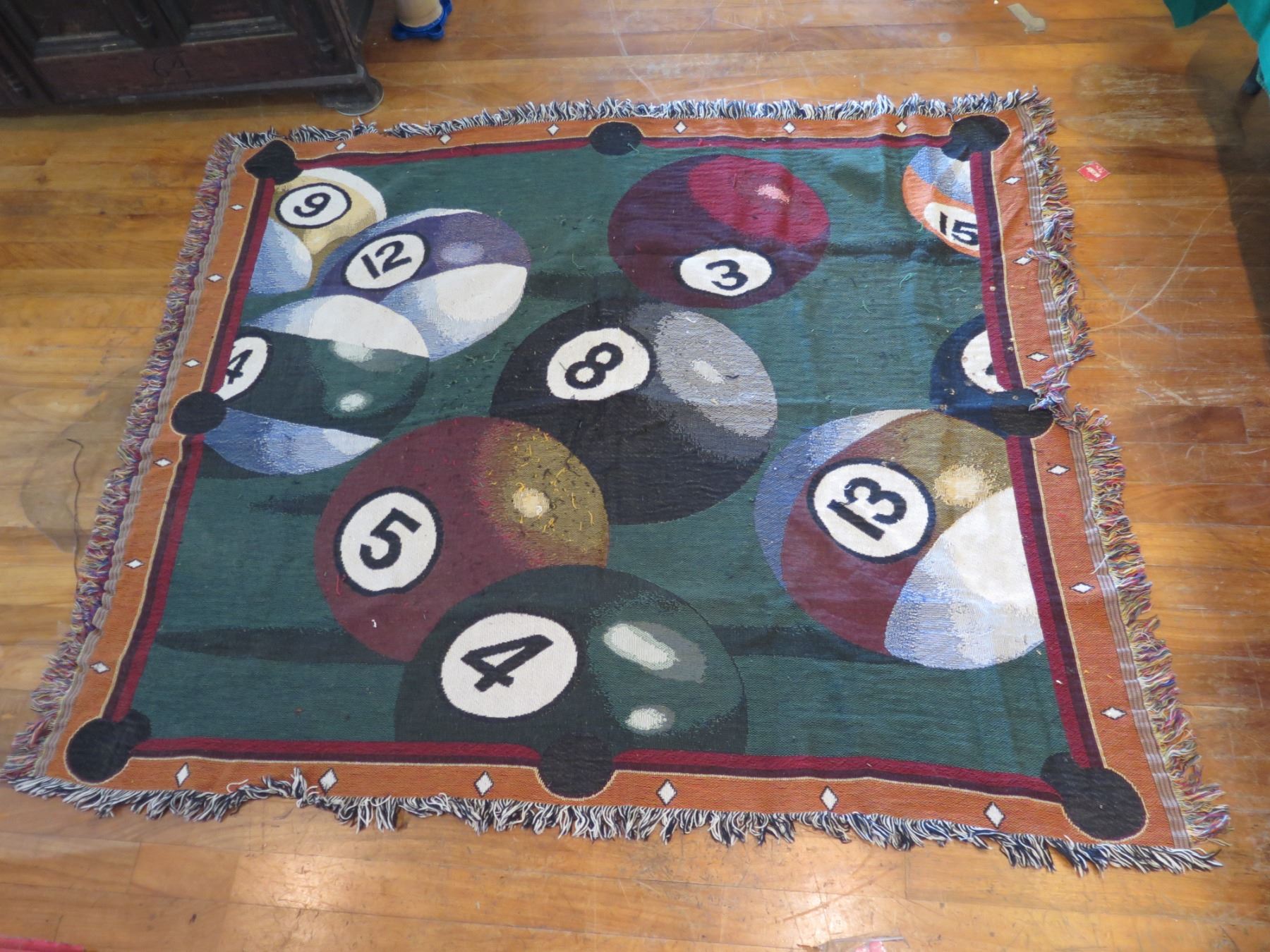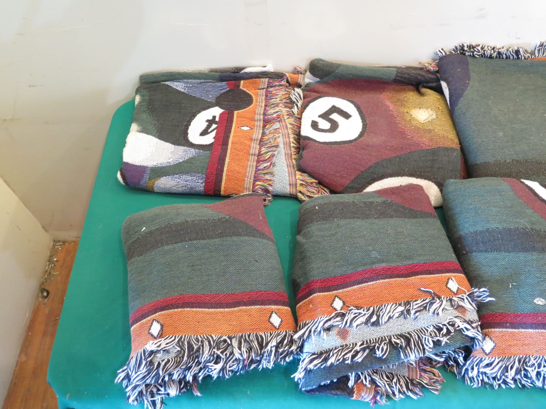 Qty Approx. 8 Billiards Pool Themed Fringed Blankets/Mats & Pool Game Mat