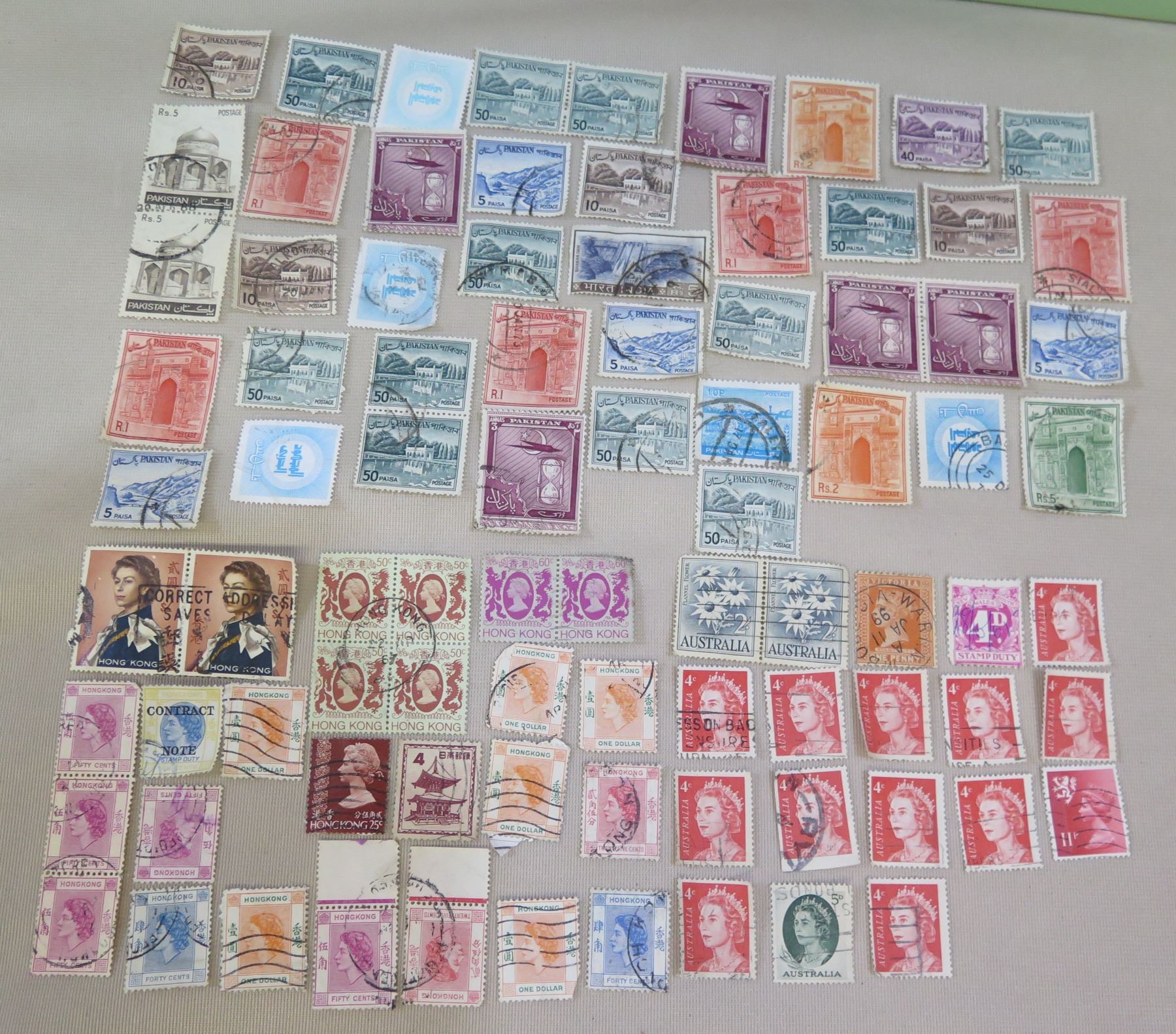 Qty Approx. 80+ Stamps: Pakistan, Hong Kong, Australia