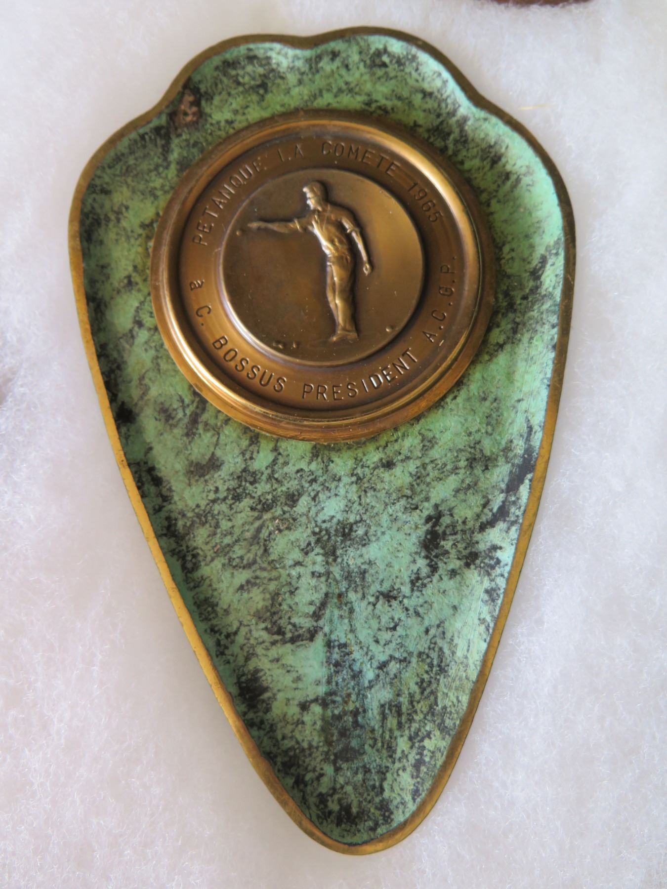 Qty Approx. 9 Medals & Coins: Athletes, Petanque la Comete, etc in Display Case 16"L