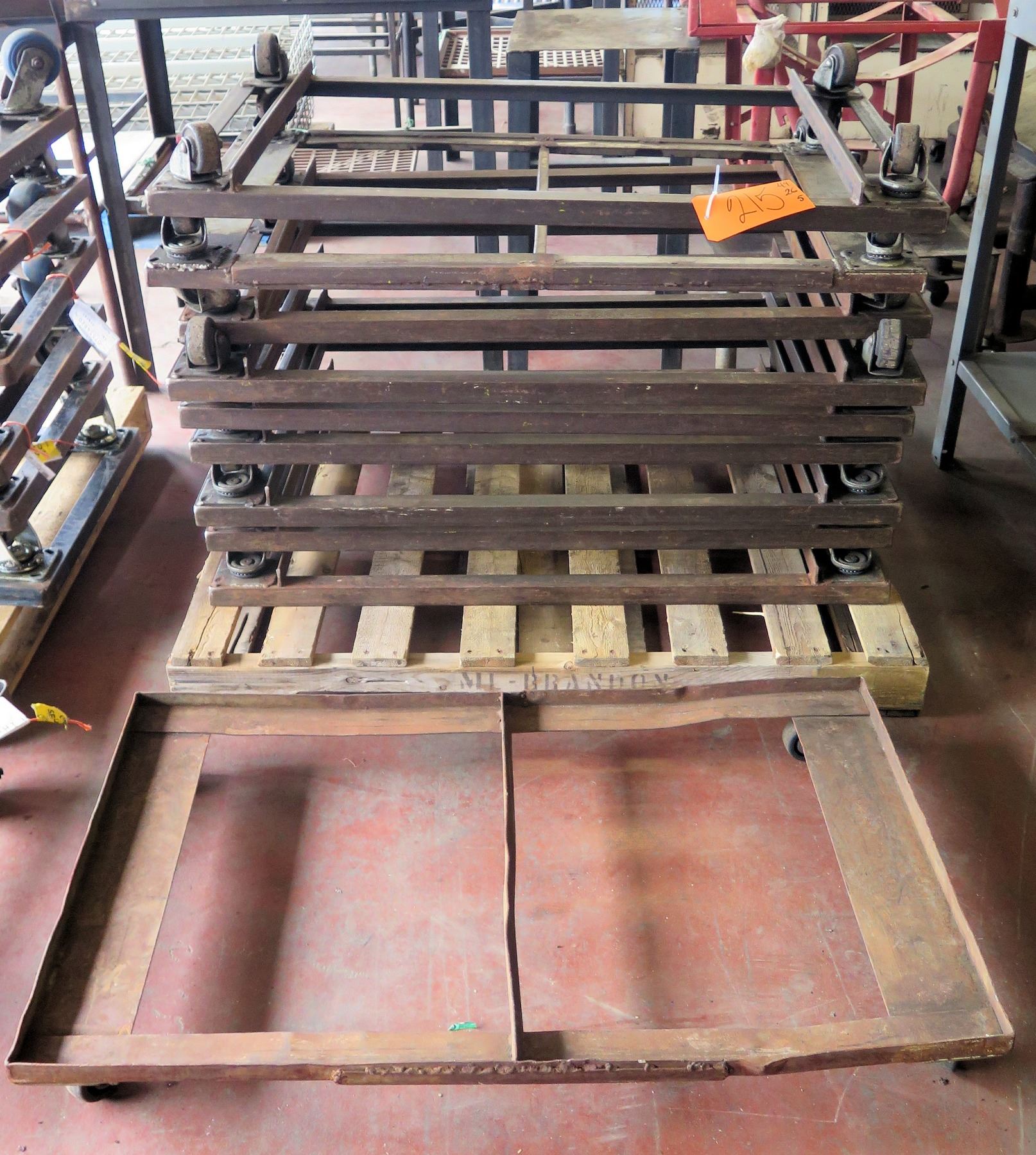 Qty Approx. 9 Square Rolling Rack Bases 44"x26"x5" Ht.