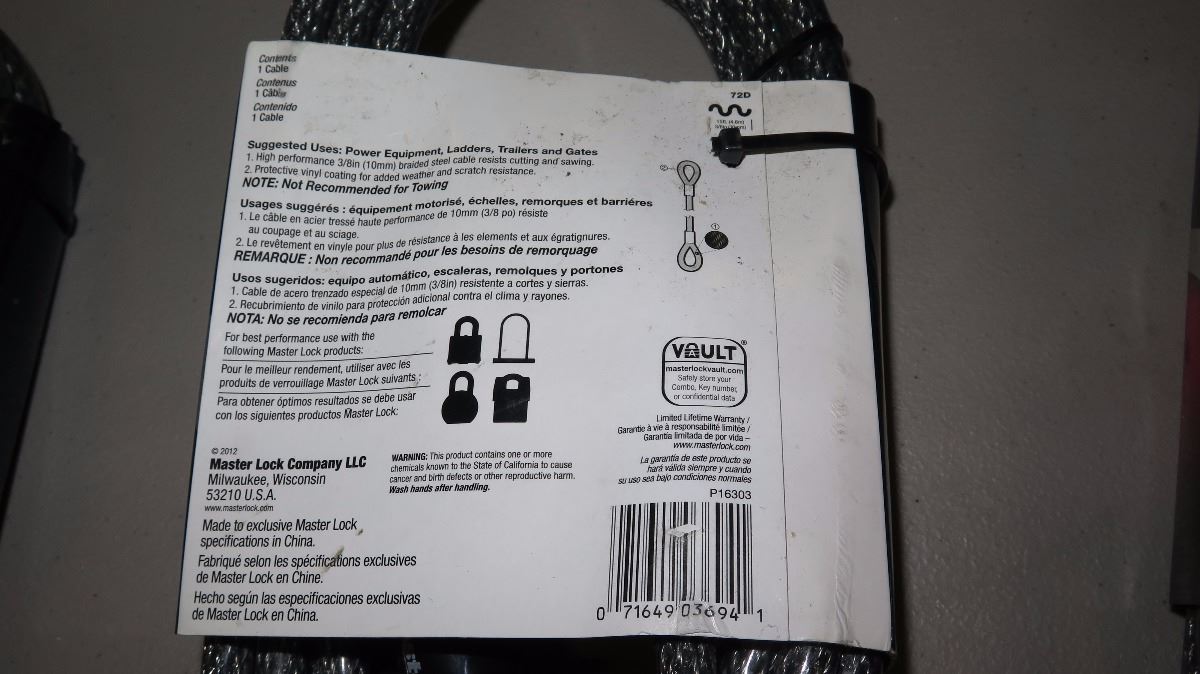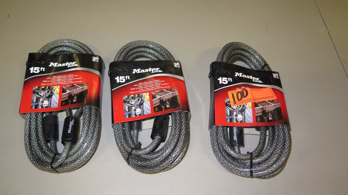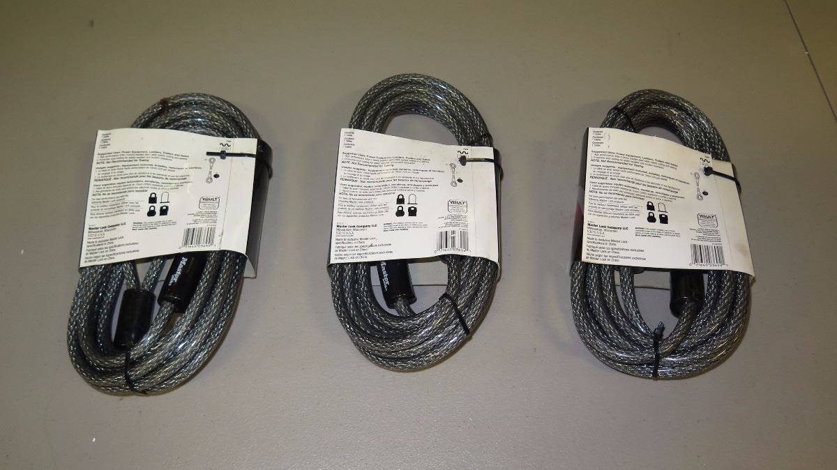 Qty NEW 3 Master Lock 15ft Braided Steel Loop Cable Lock