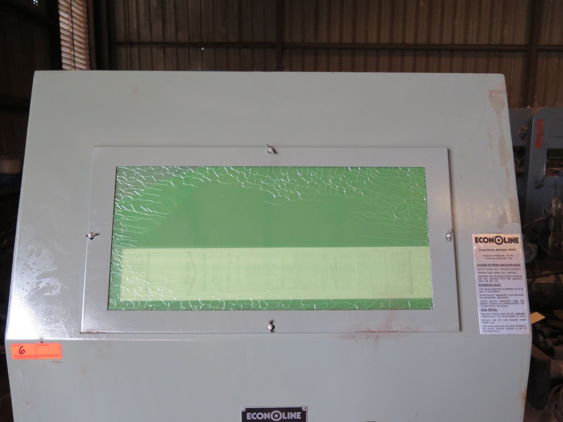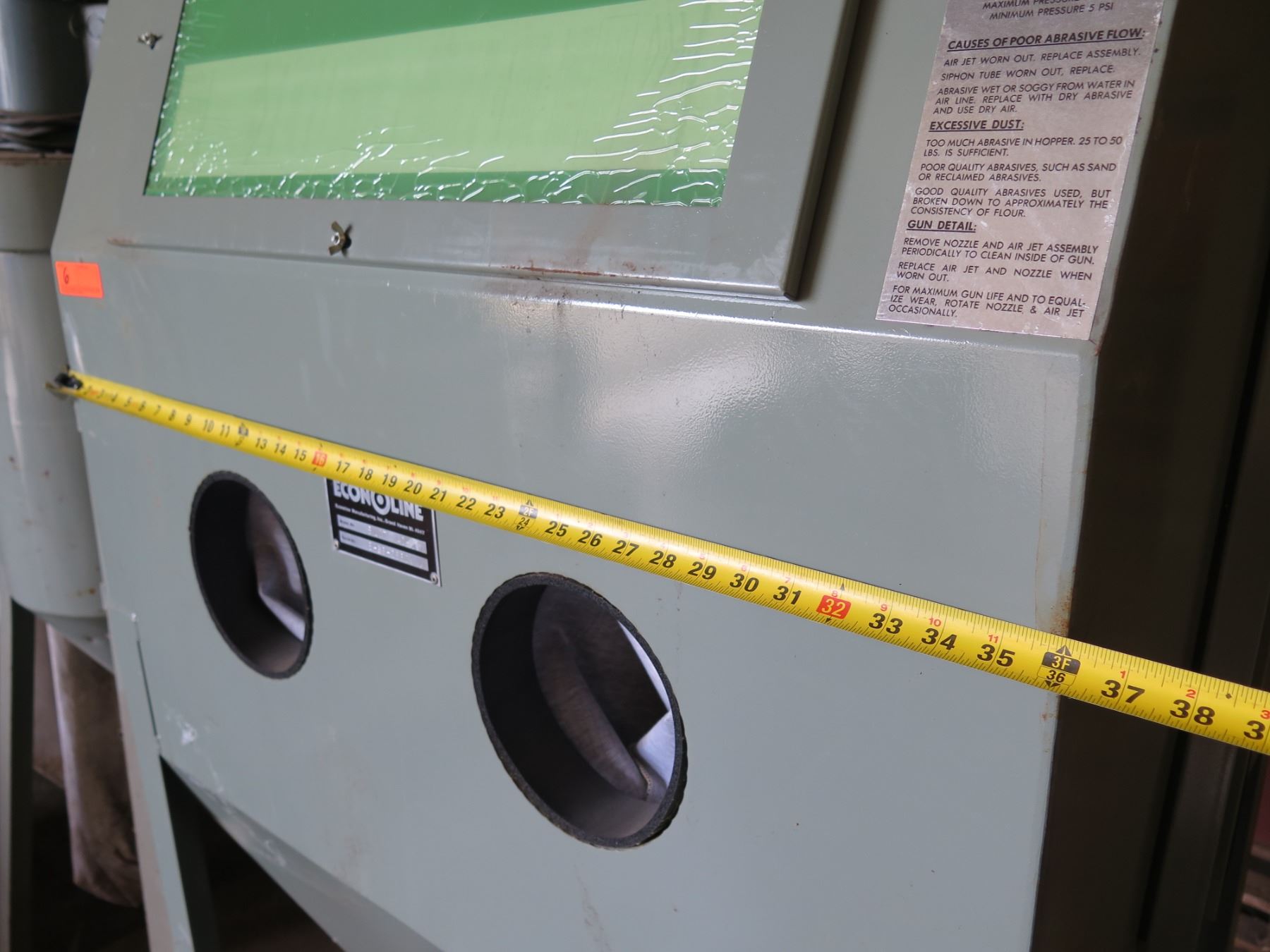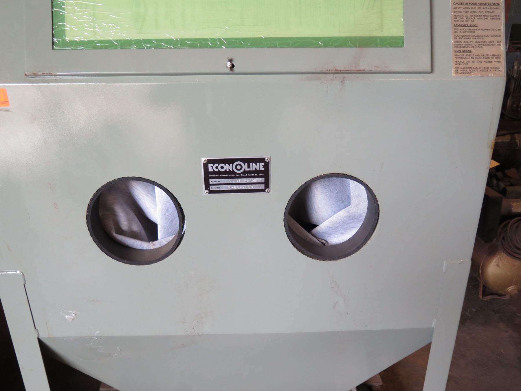 Econoline Slot Mach. E-86-2860 Abrasive Blast Cabinet 36"W x 70"H & Round Hopper