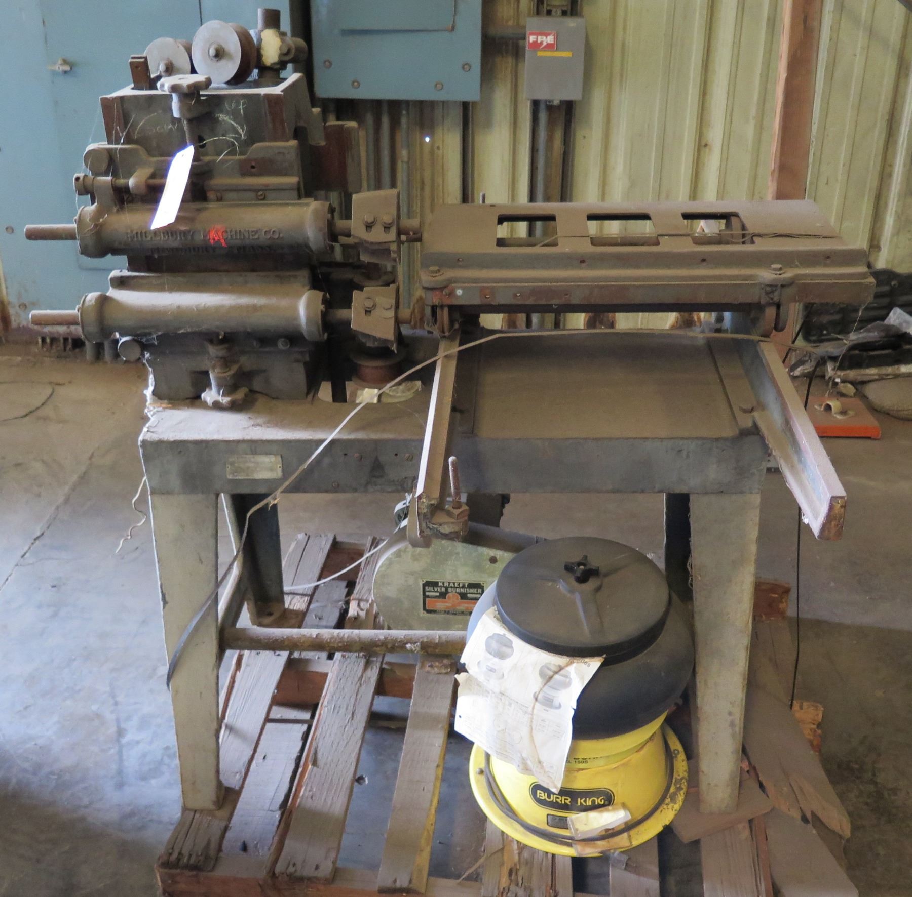 Millbury Machine Co. LT106 Single End Tenoner 47"L w/ Burr King 1506 Vibratory Bowl