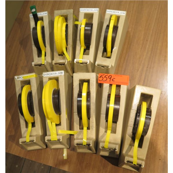 Qty 9 Tape Dispensers w/ Yellow Tape Rolls