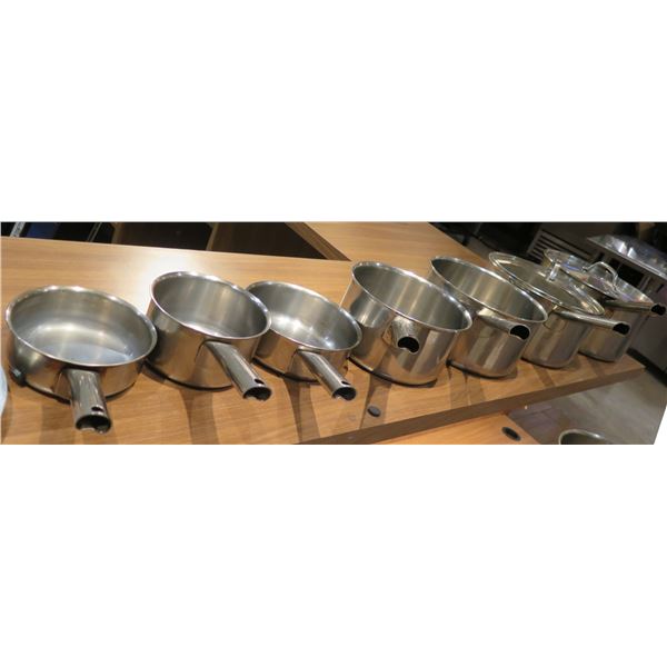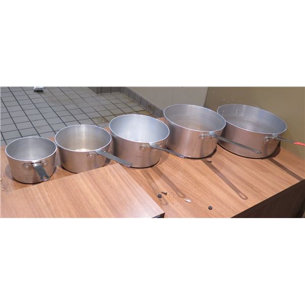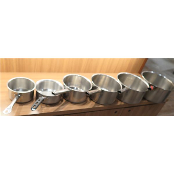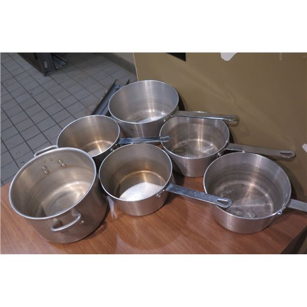 Qty 6 Large Thermalloy Sauce Pots w/ Handles, Misc Sizes