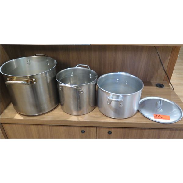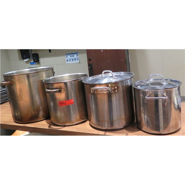 Qty 4 Large Stock Pots (Some Lids), Misc Sizes