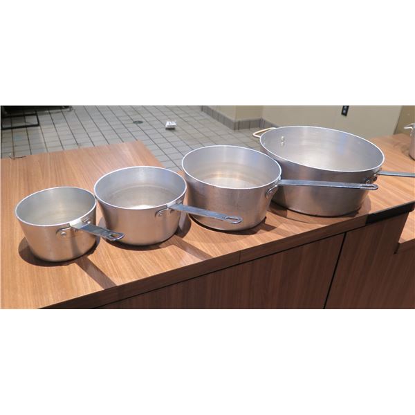 Qty 4 Large Thermalloy Sauce Pots w/ Handles, Misc Sizes