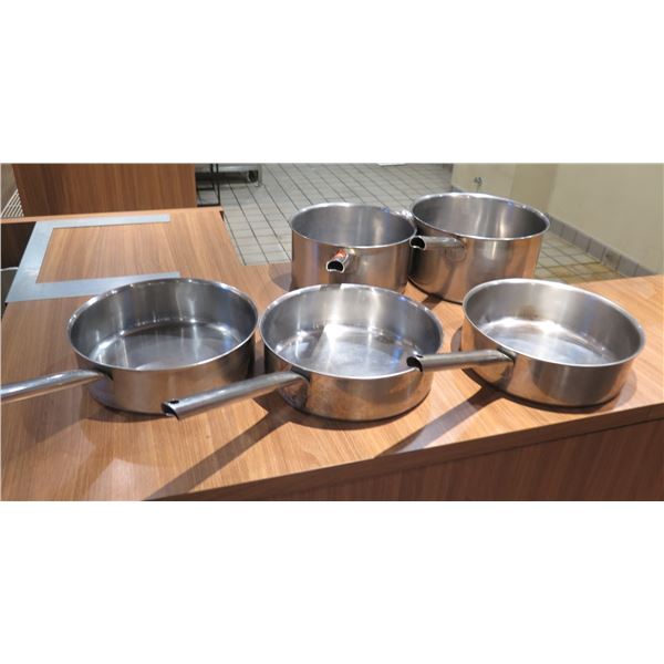 Qty 5 Thermalloy Metal Sauce Pots w/ Handles, Misc Sizes