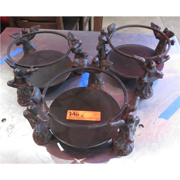 Qty 3 Metal Plant Stands w/ Angel Motif 8" Dia, 5"H (Heavy)