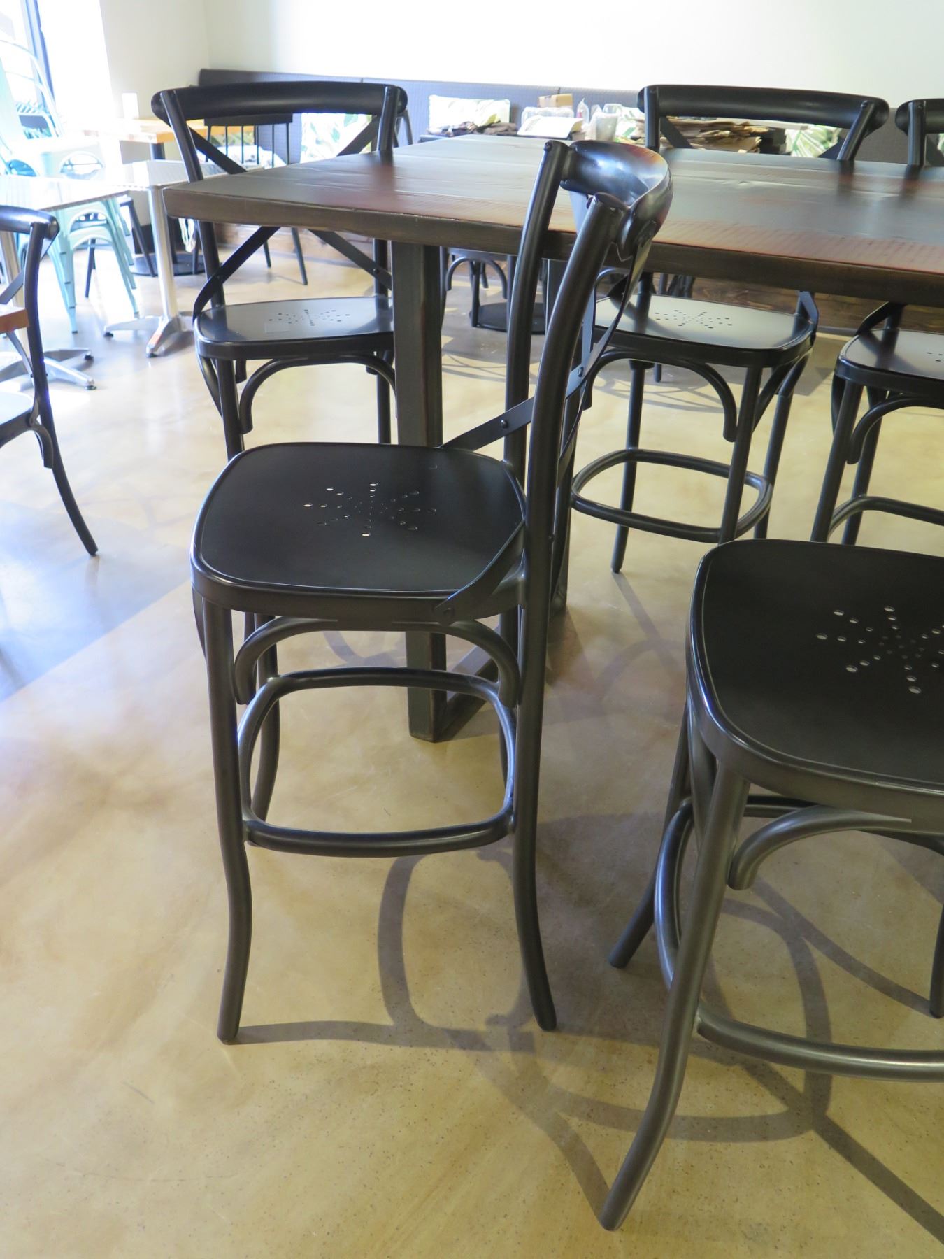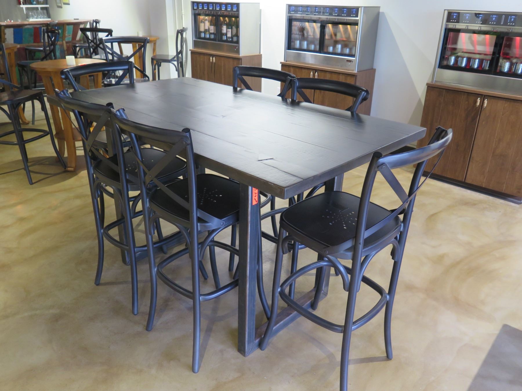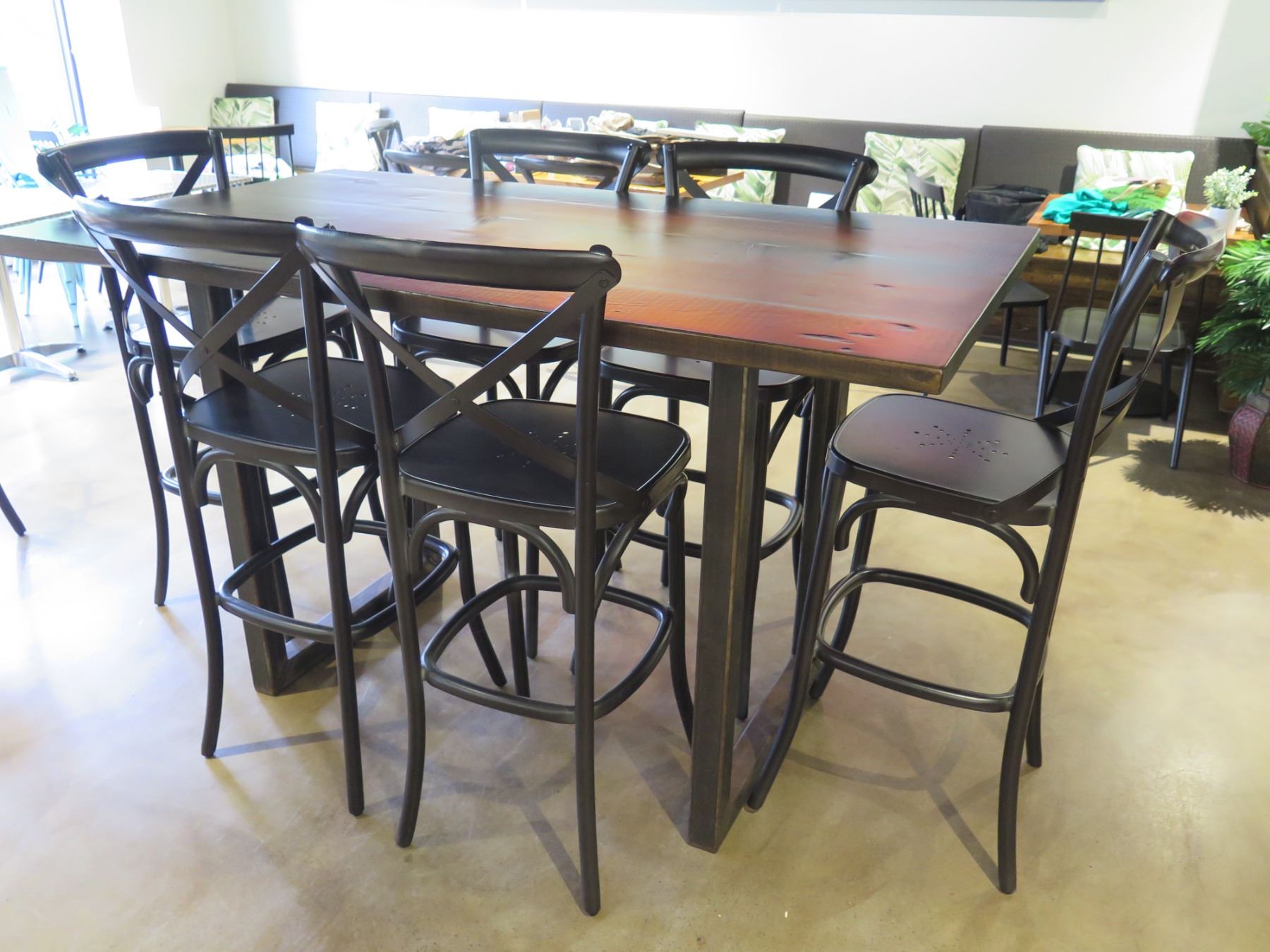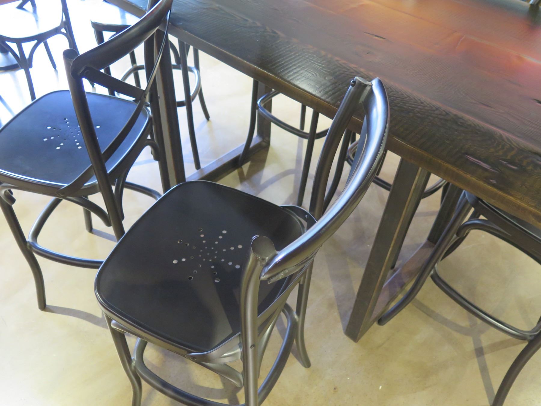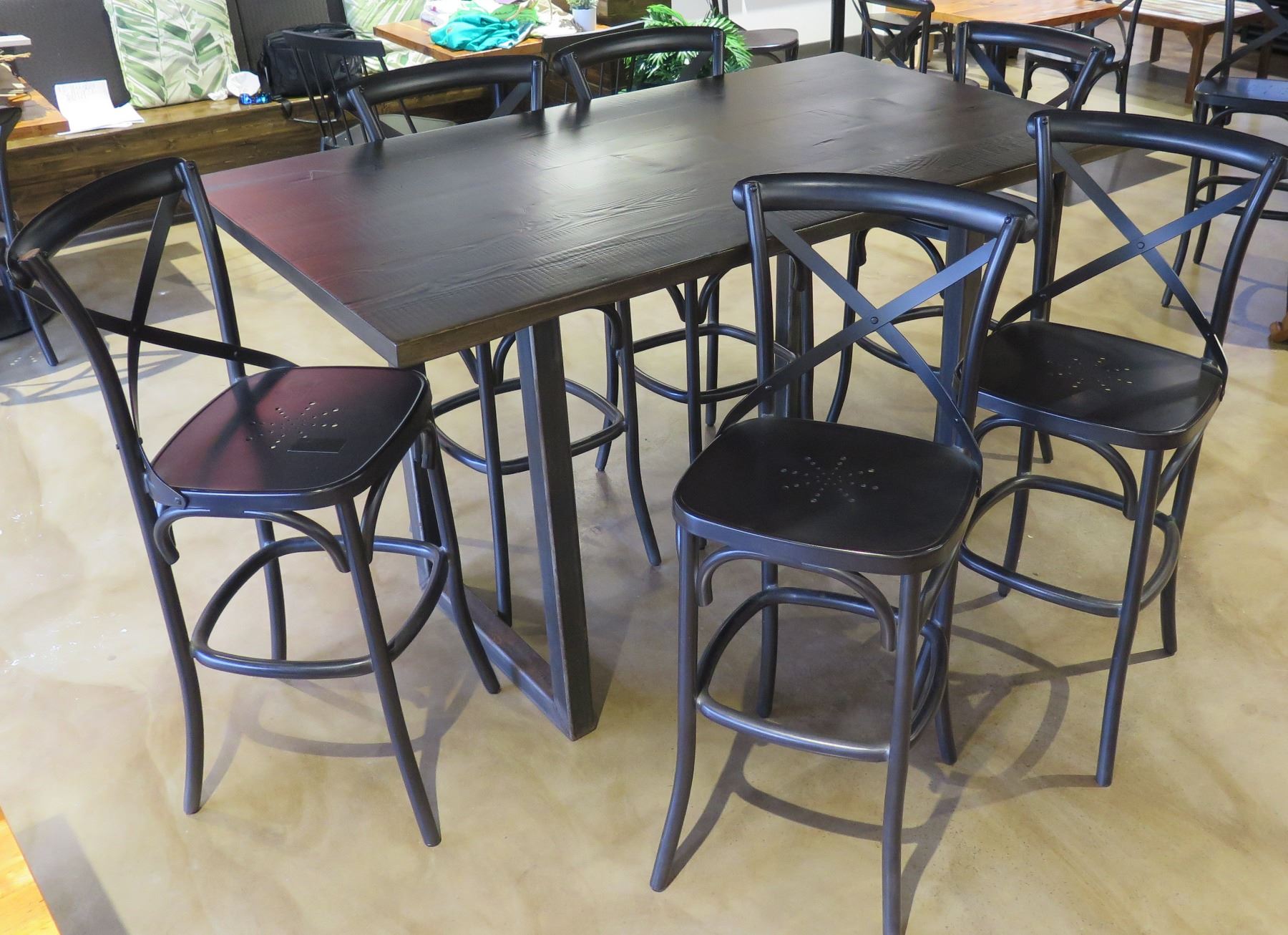 RH Restoration Hardware Wooden Table 72"x40"x42"H & 6 Stools 20"x17"x40"H