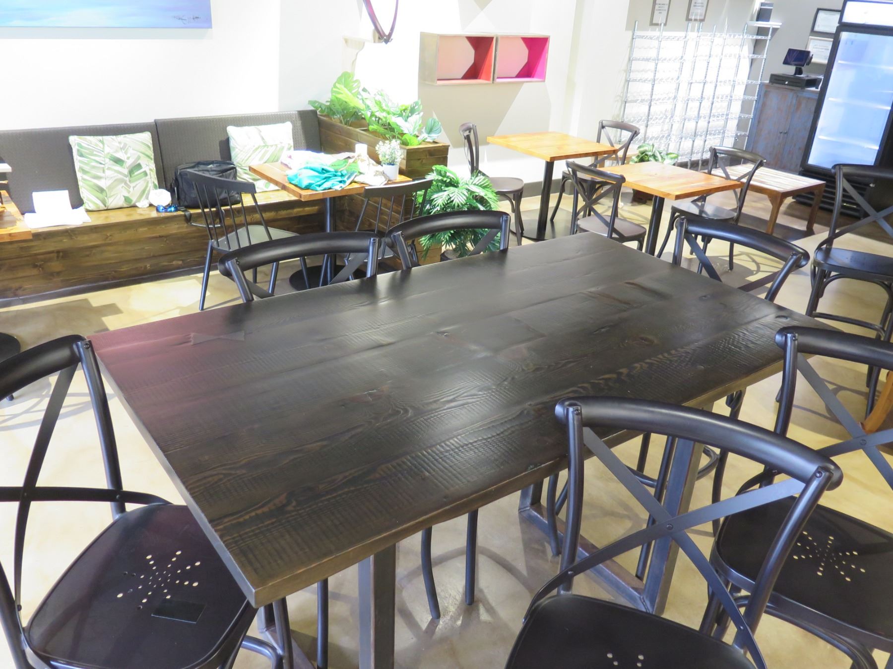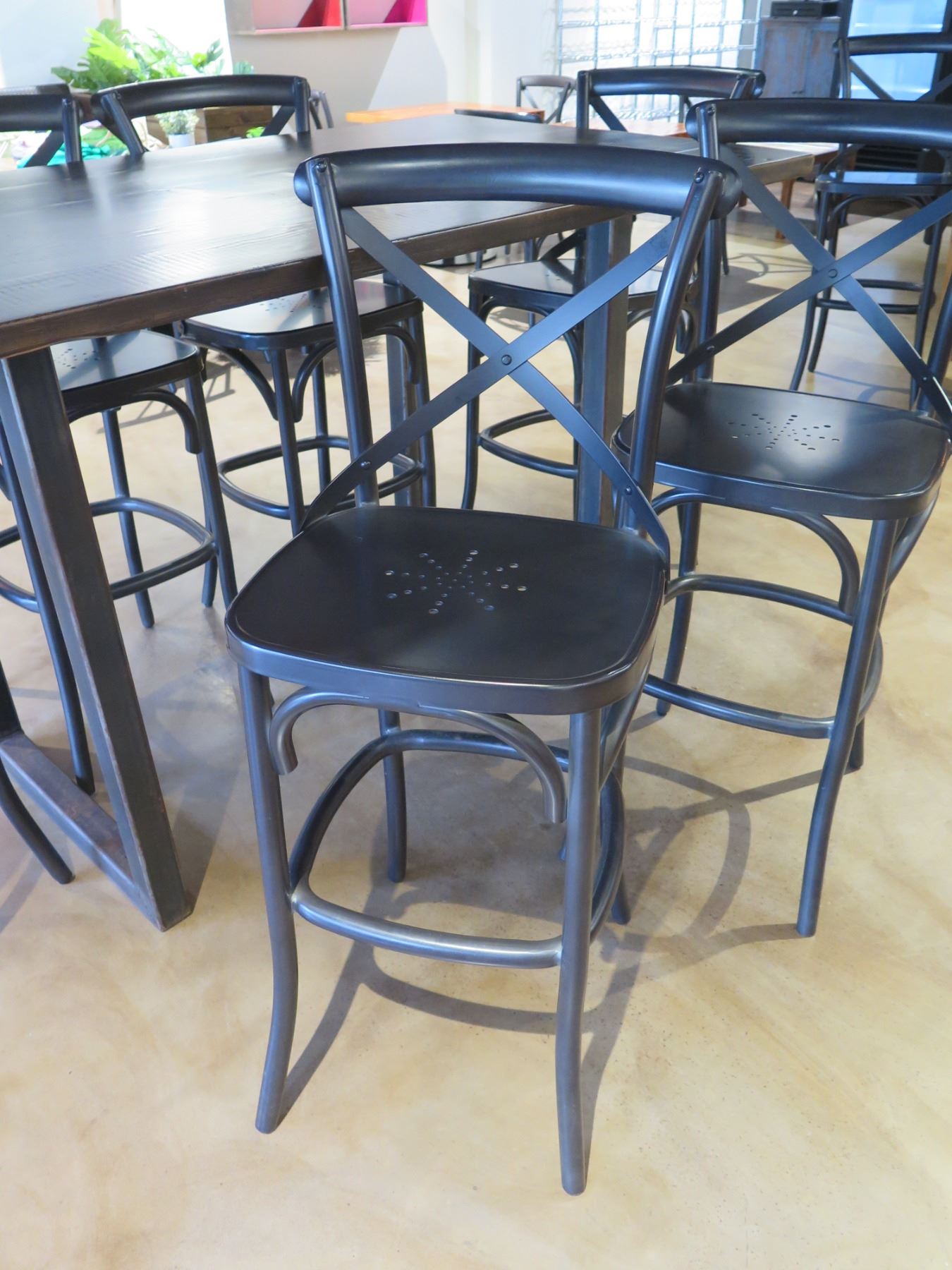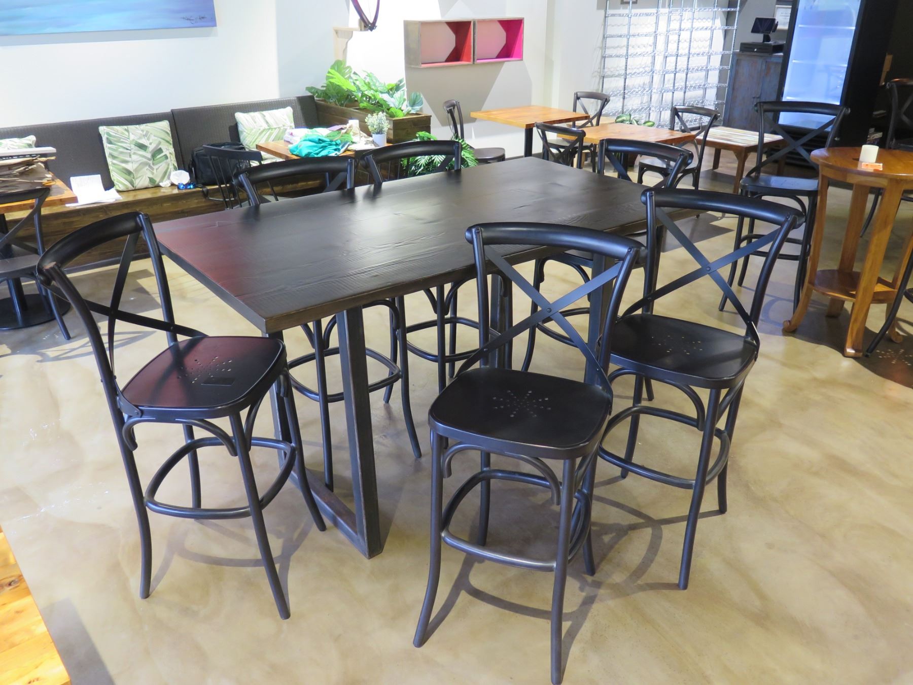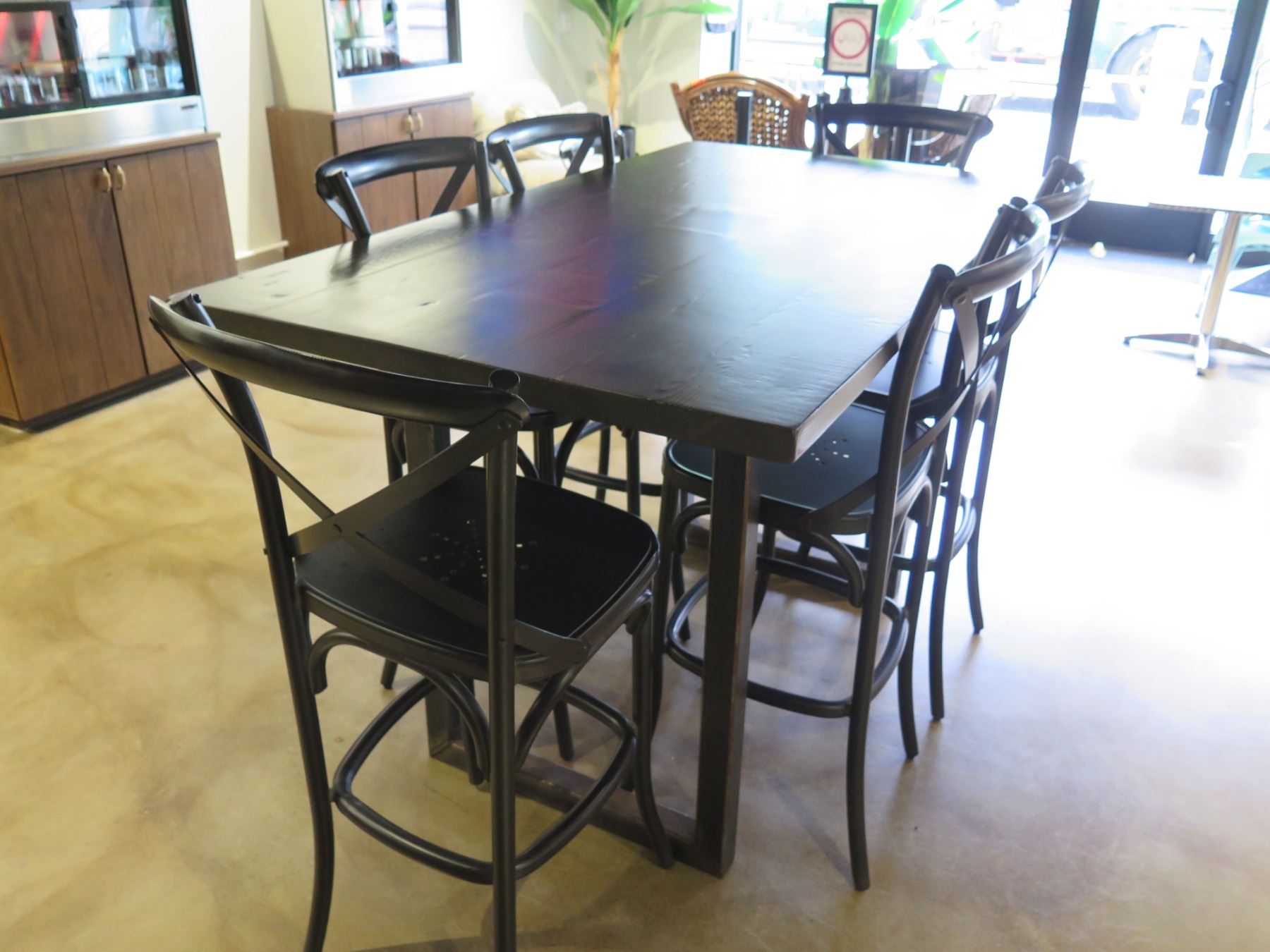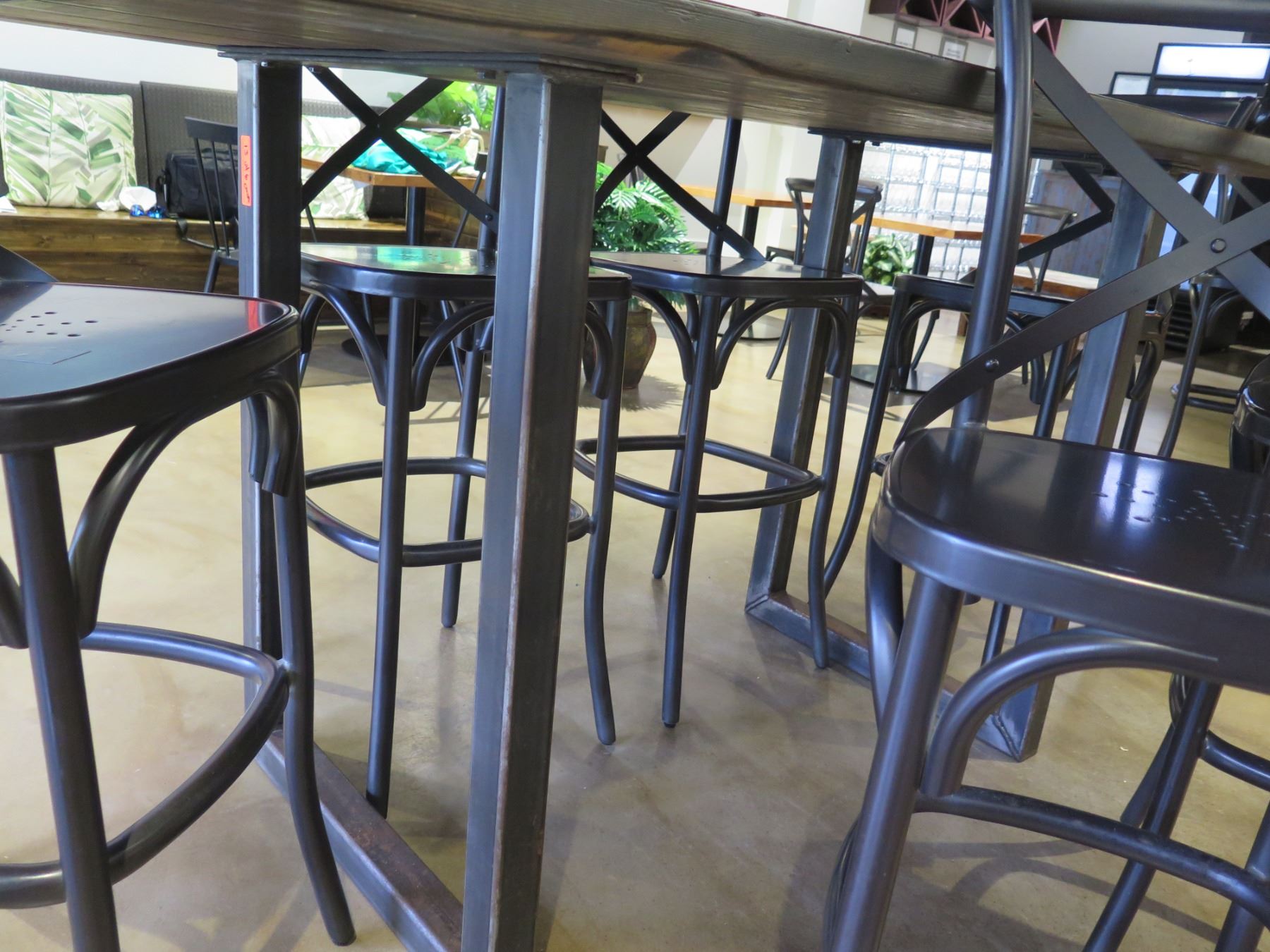 RH Restoration Hardware Wooden Table 72"x40"x42"H & 6 Stools 20"x17"x40"H
